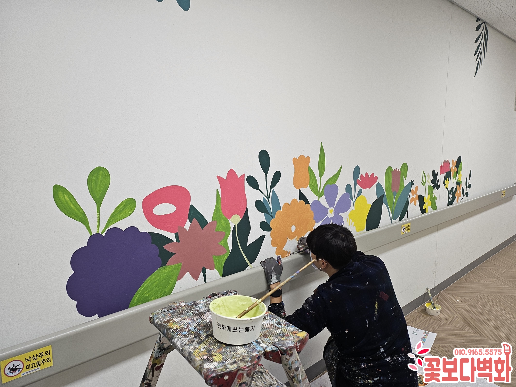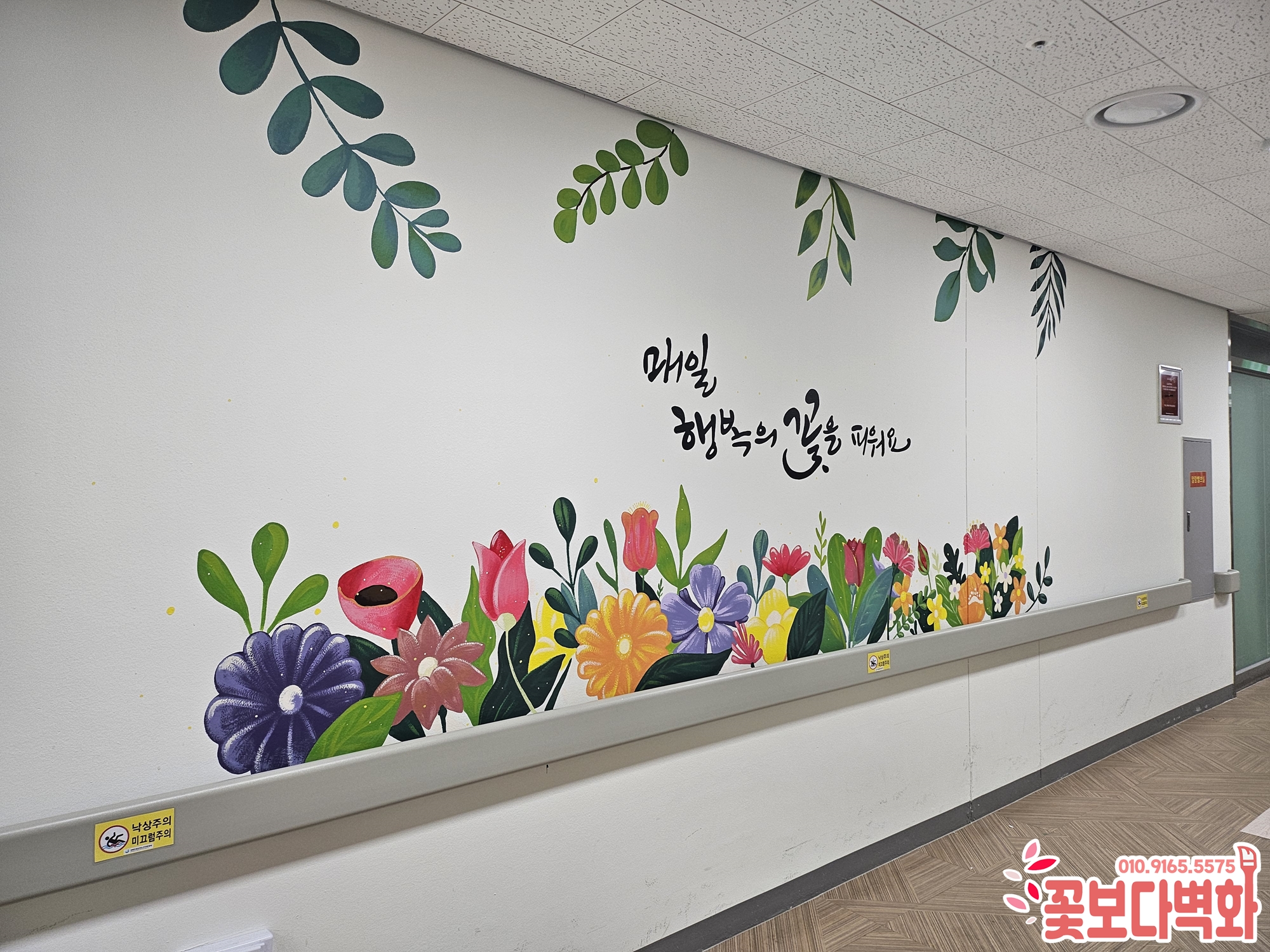 경상북도립 김천 노인요양병원에 다양하고 예쁜 인테리어 벽화작업 하고 왔어요. / 꽃그림, 캘리그라피, 병원벽화