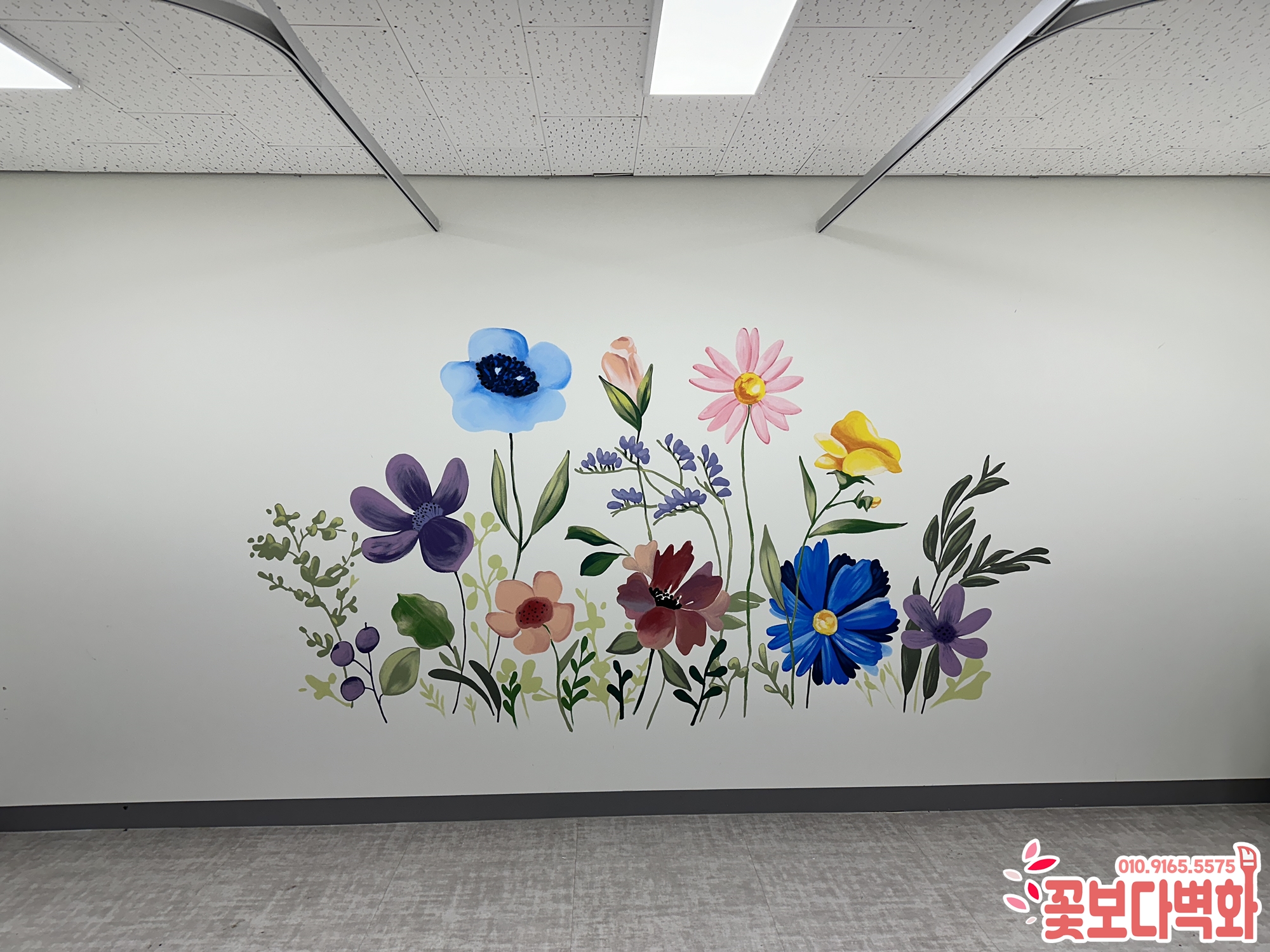 아름다운 꽃과 따뜻한 캘리그라피 문구로 벽화 작업을 진행하고 왔습니다.