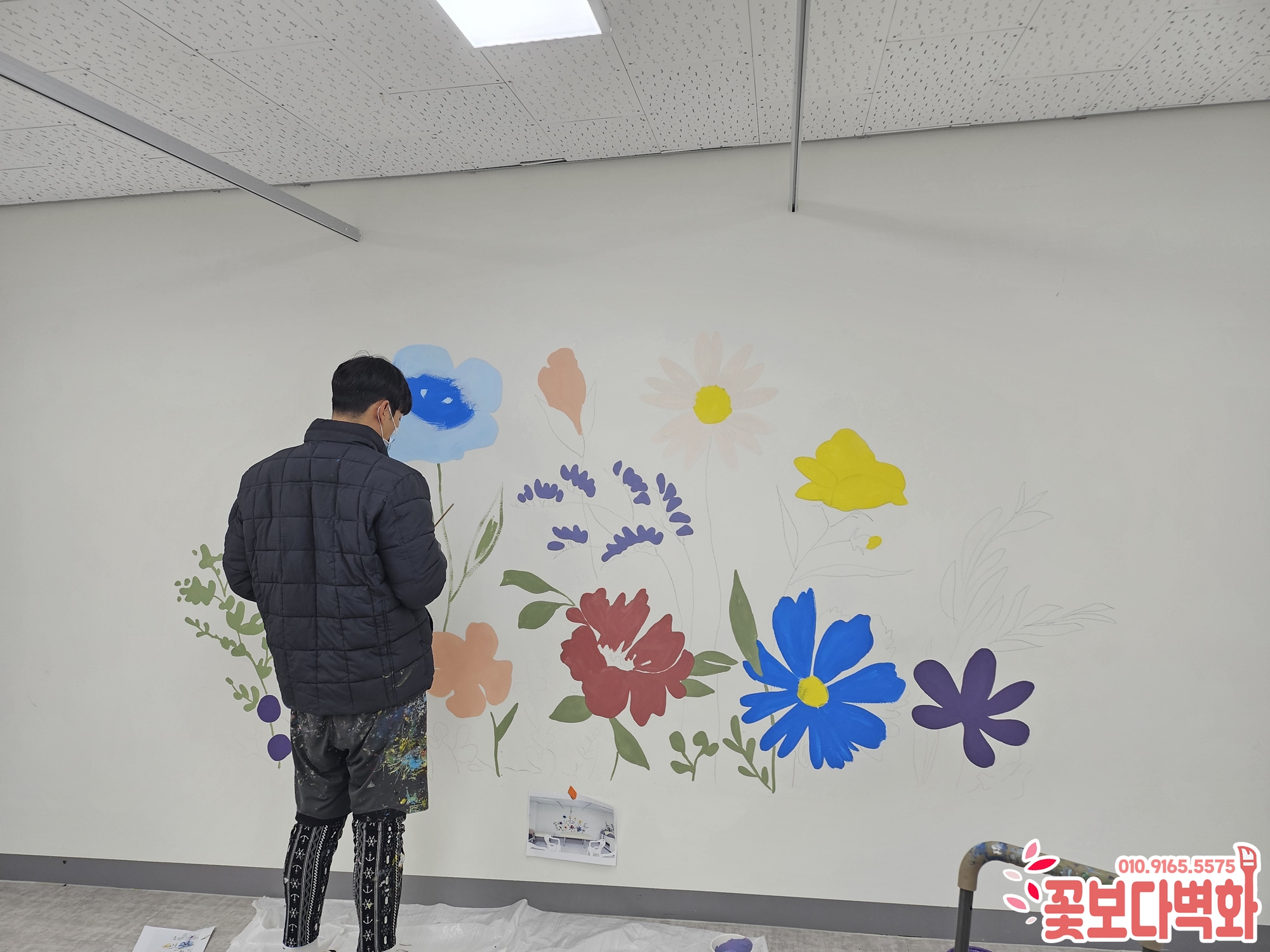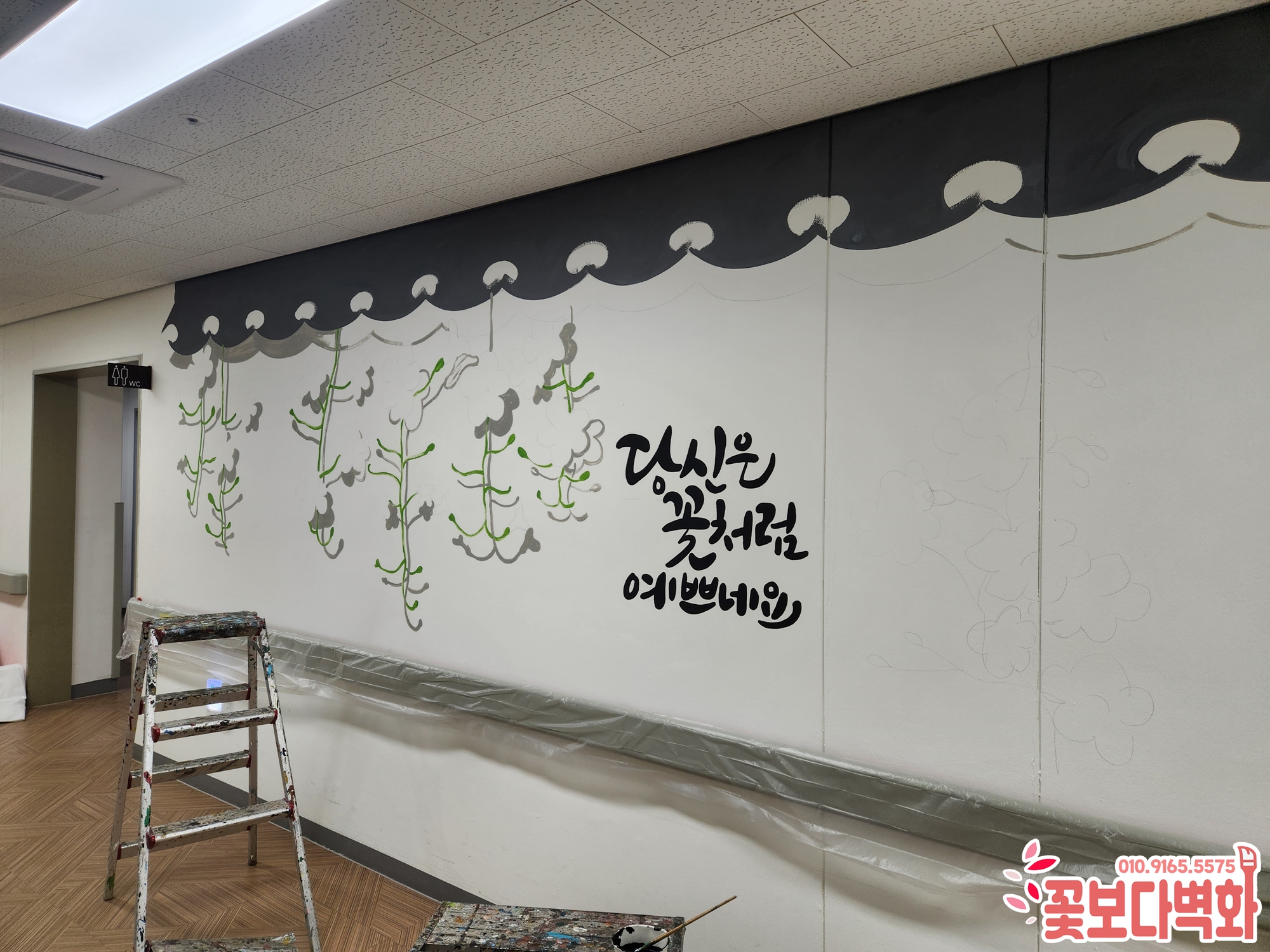 아름다운 꽃과 따뜻한 캘리그라피 문구로 벽화 작업을 진행하고 왔습니다.