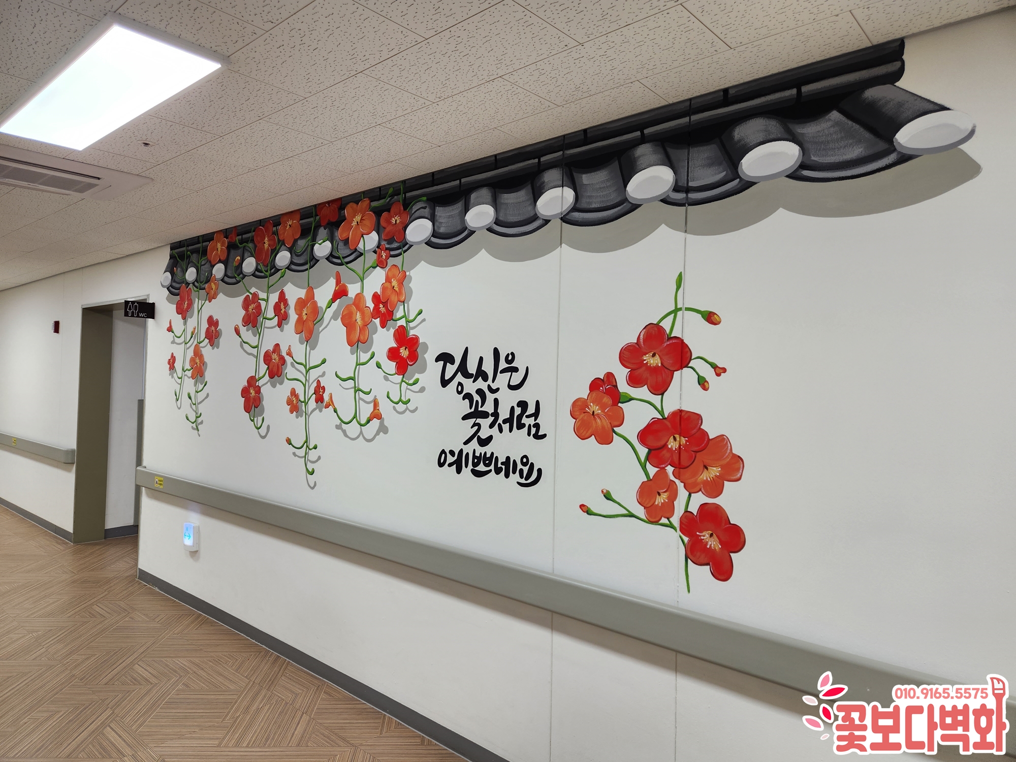 경상북도립 김천 노인요양병원에 다양하고 예쁜 인테리어 벽화작업 하고 왔어요. / 꽃그림, 캘리그라피, 병원벽화