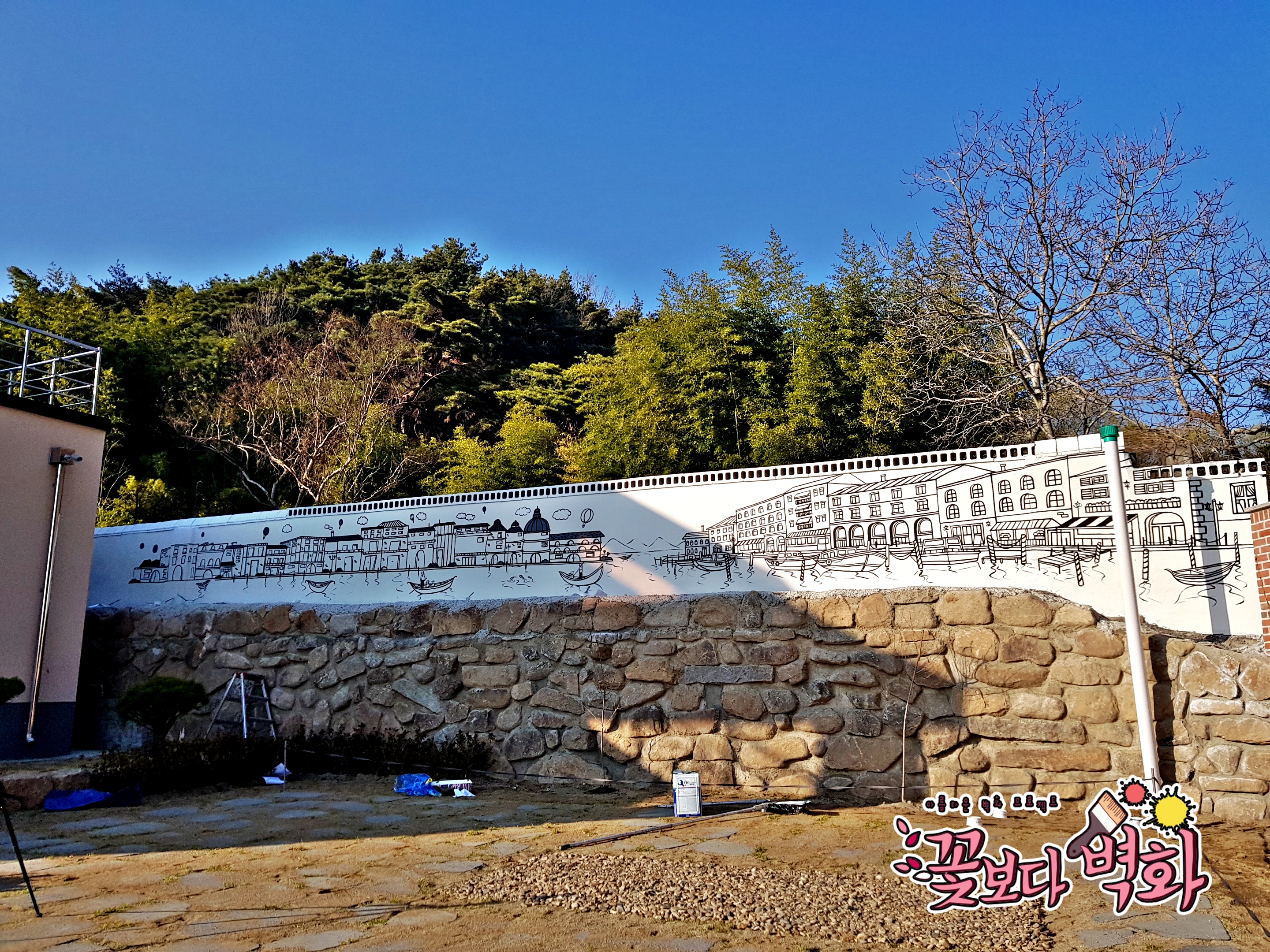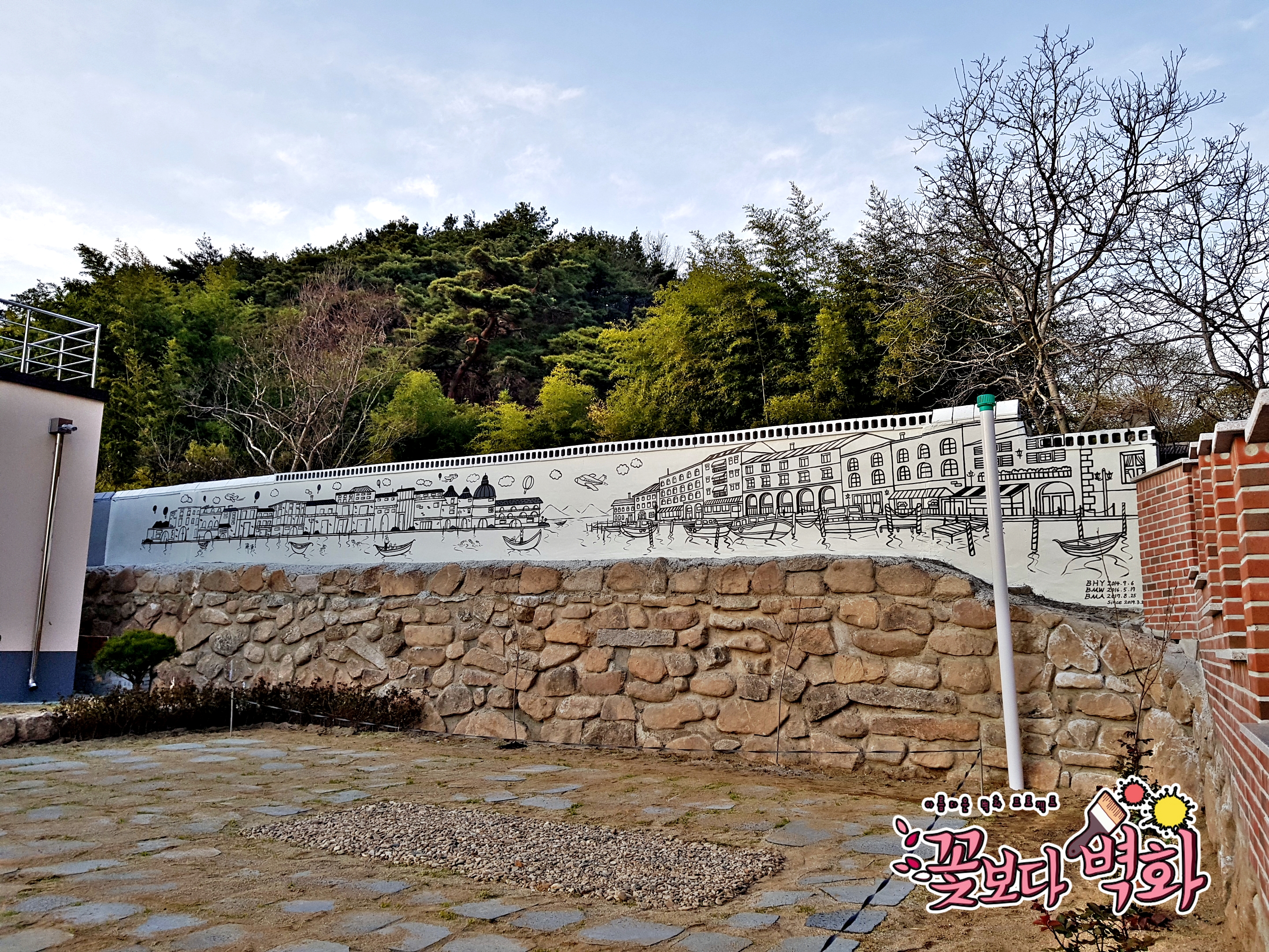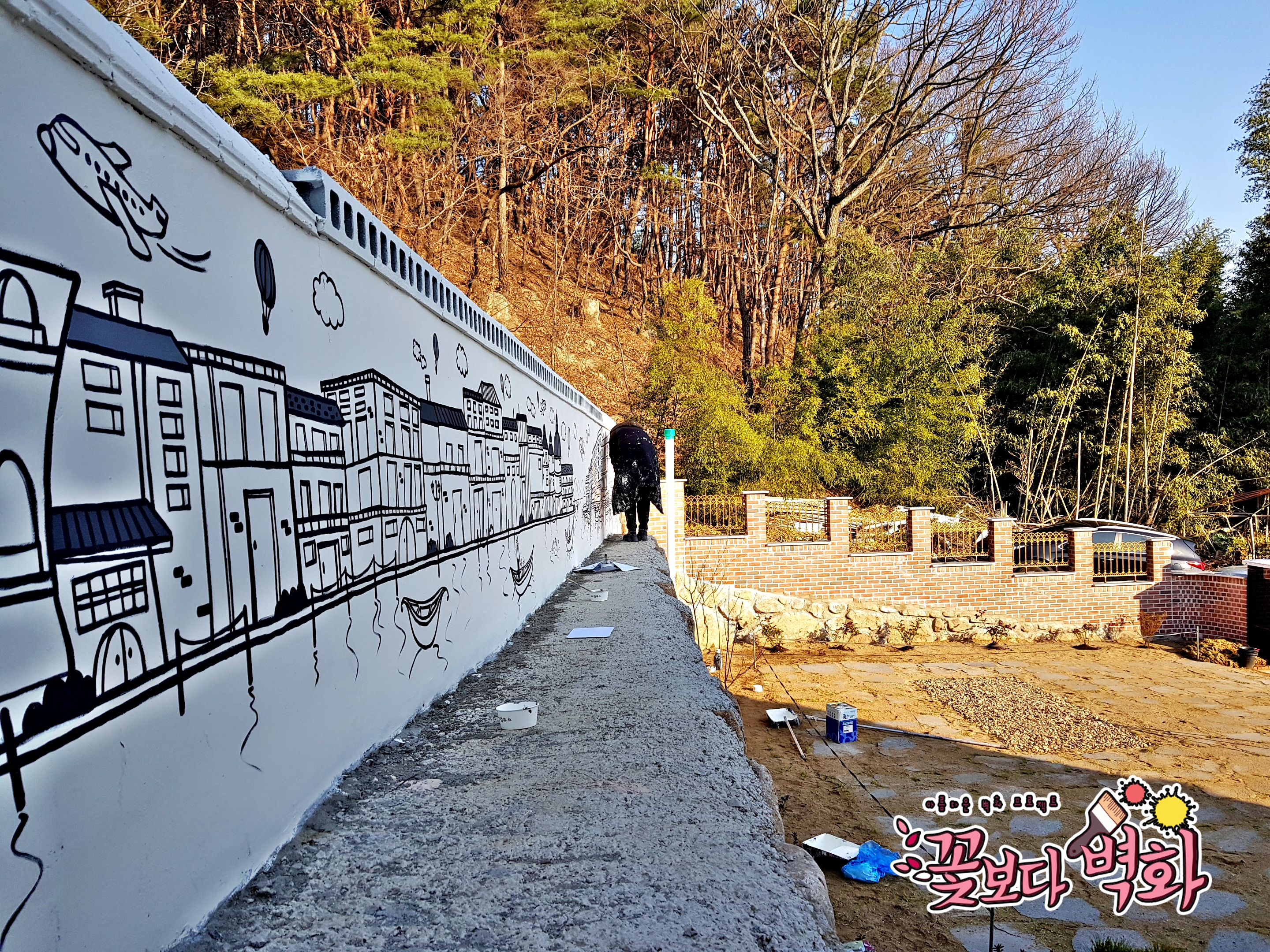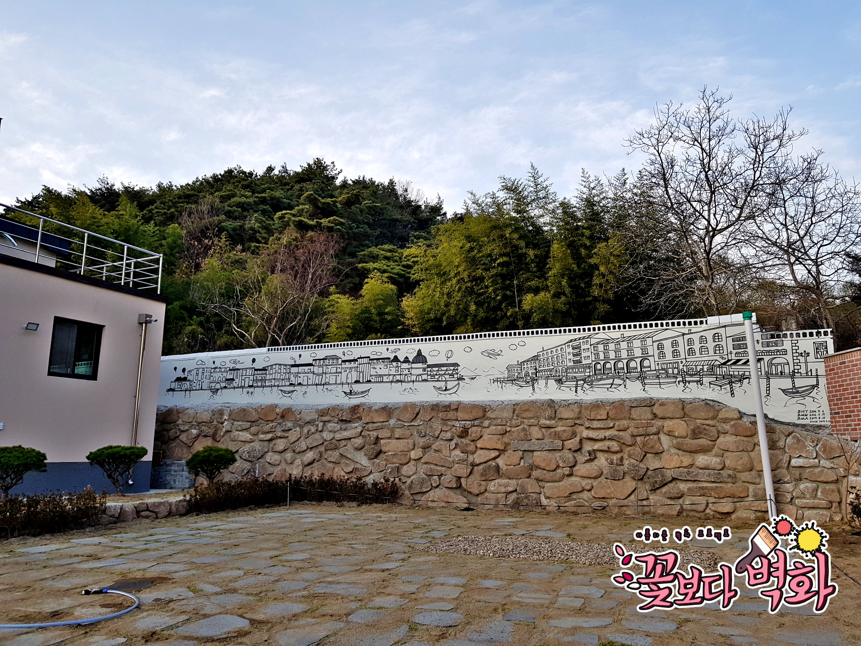 대구 팔공산 전원주택 담벼락에 그려진 유럽풍경 라인벽화도 성공적~!!!