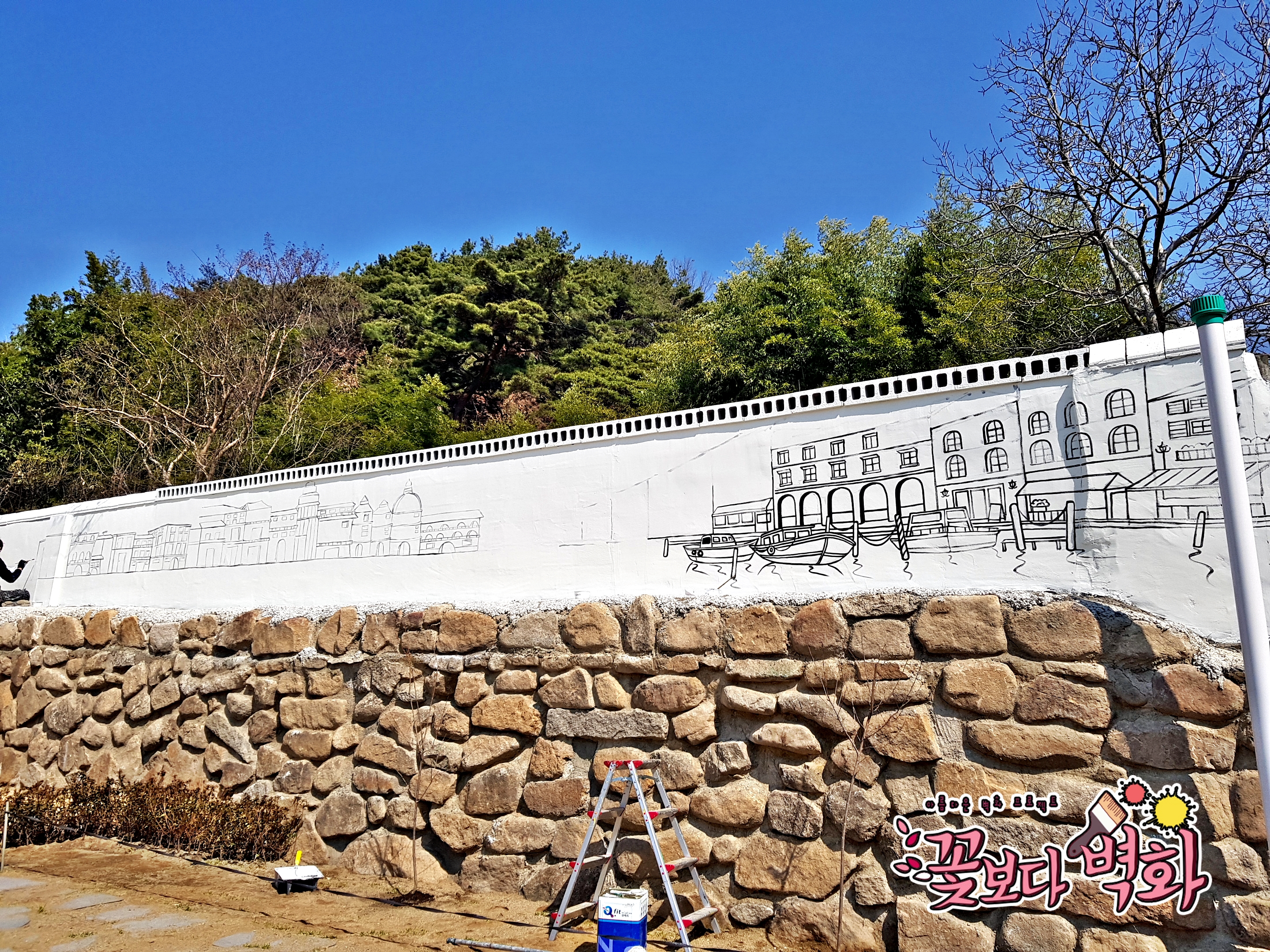 앞쪽에는 나룻배와 요트들도 들어가면 더 꽉차고 예쁜 라인벽화가 탄생하겠죠?