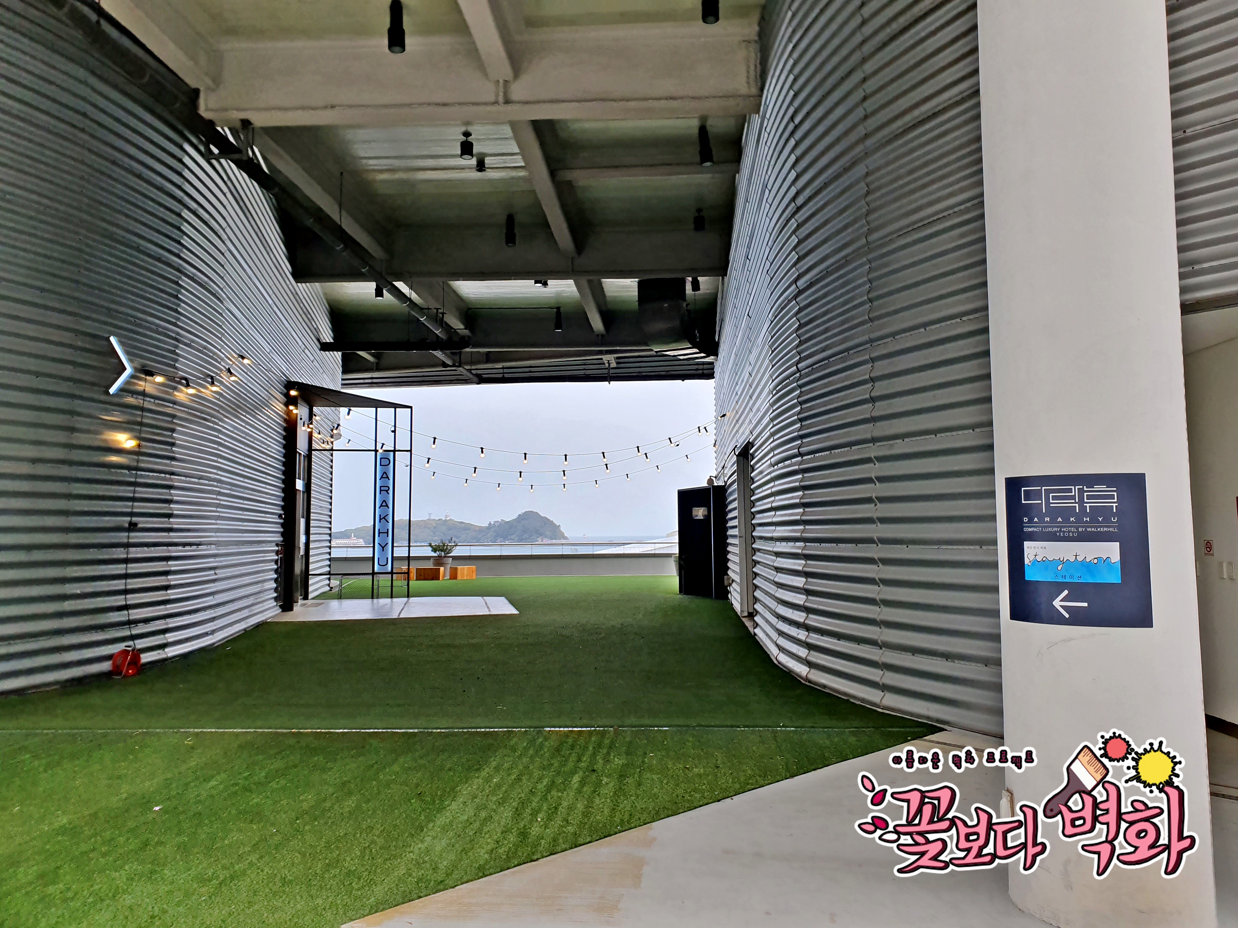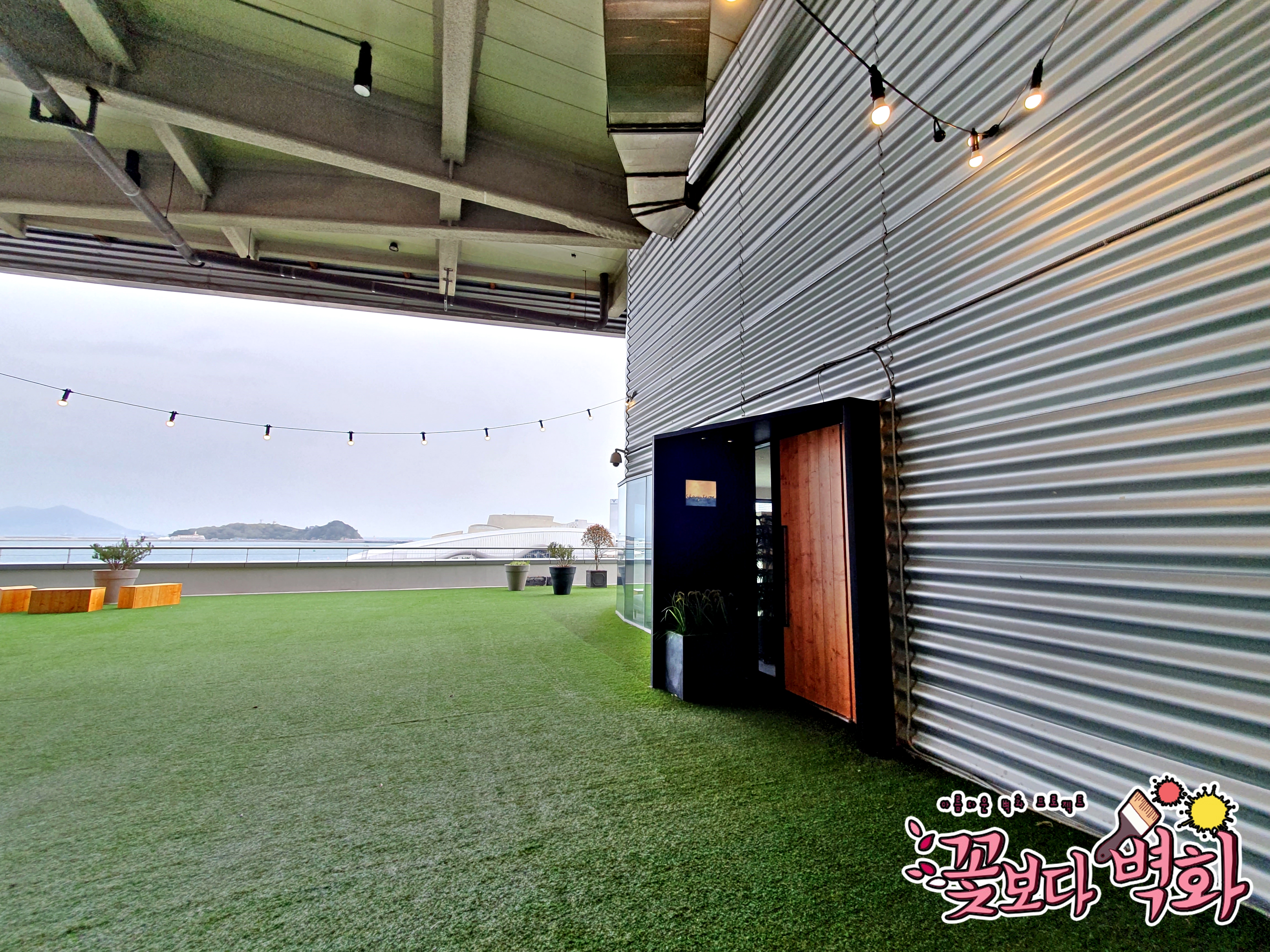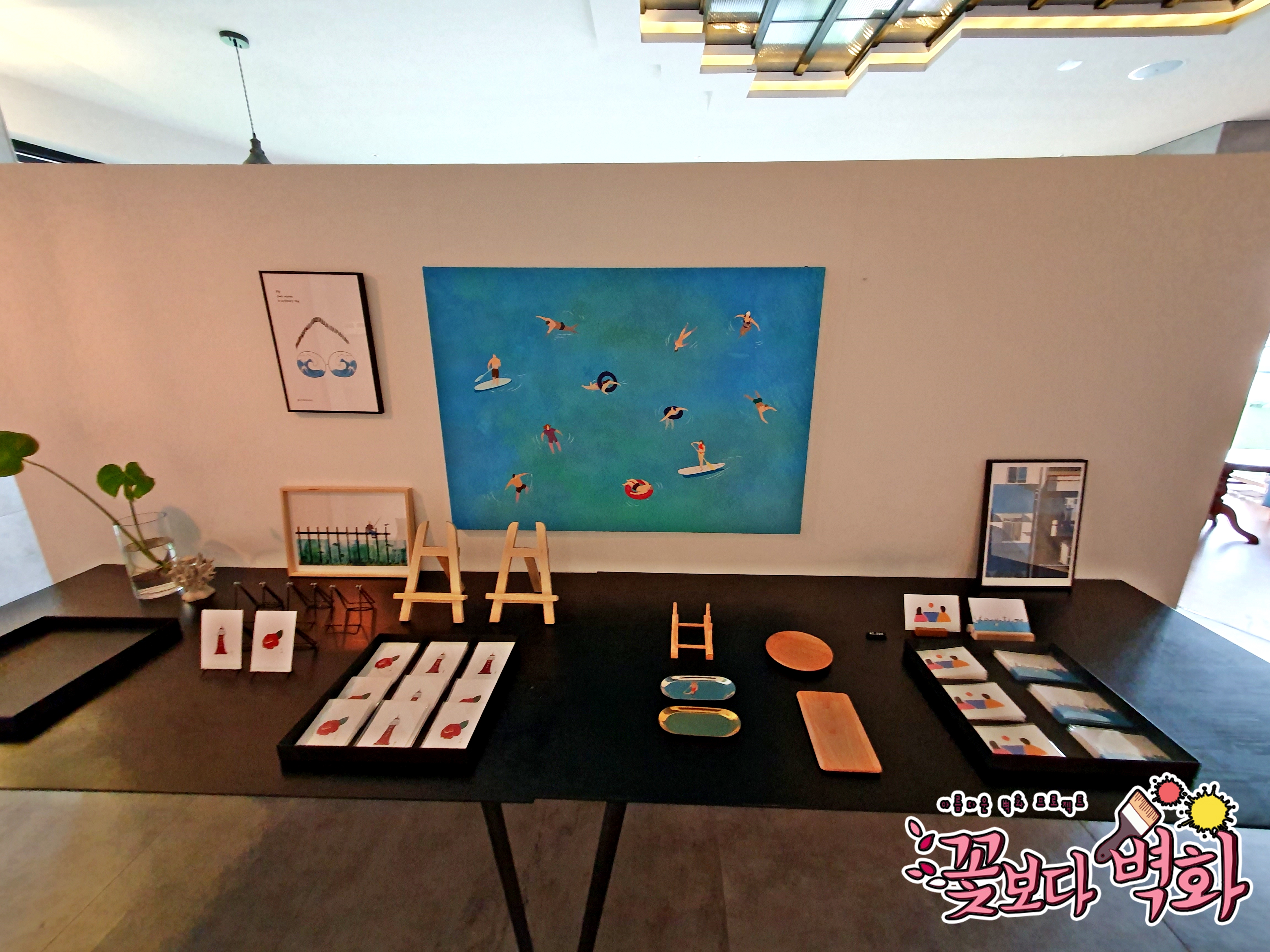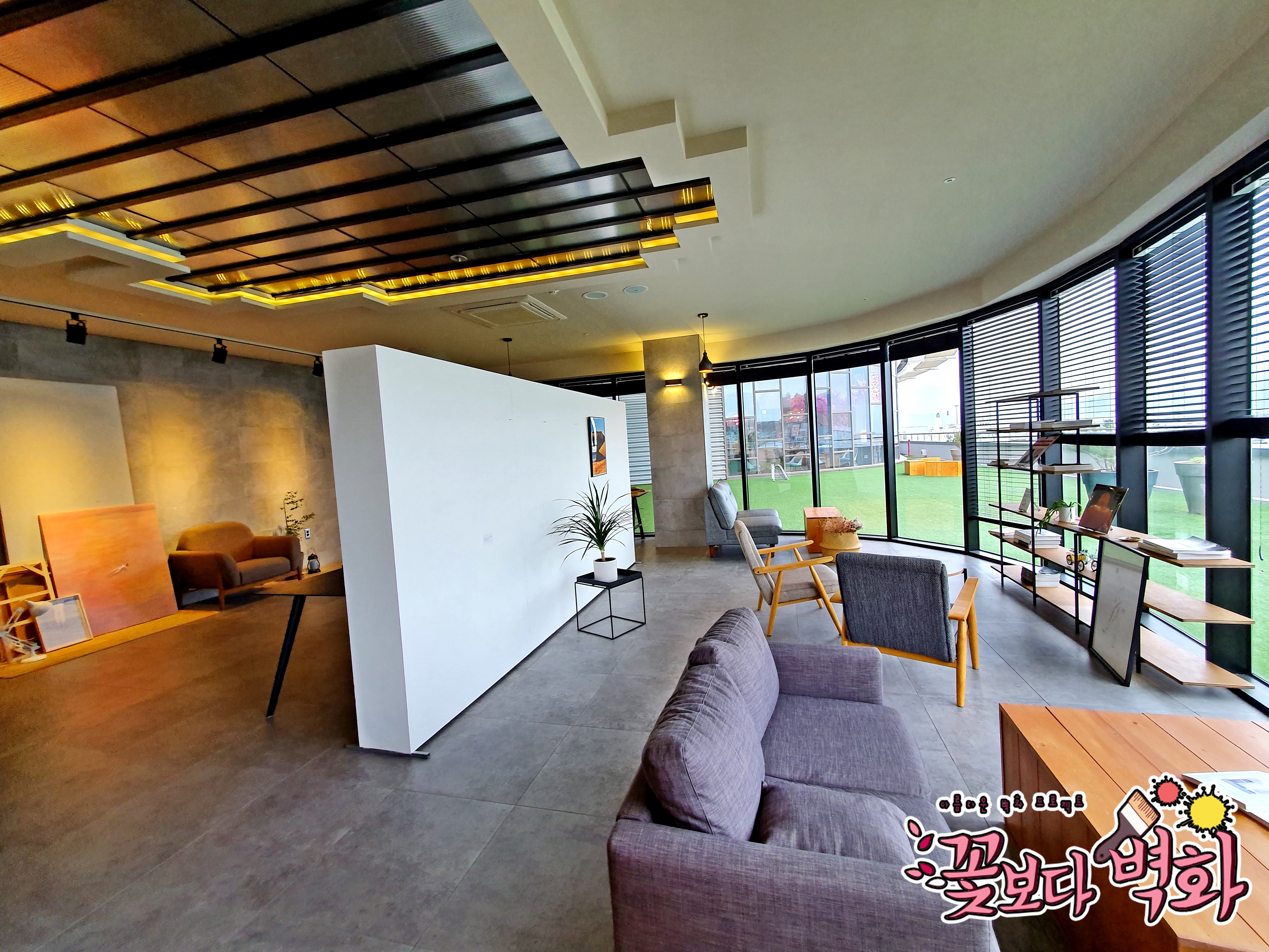이렇게 넓은 공간에 바다와함께 커피를 마실 수 있는 공간과, 멋진 그림들이 전시되어있습니다.