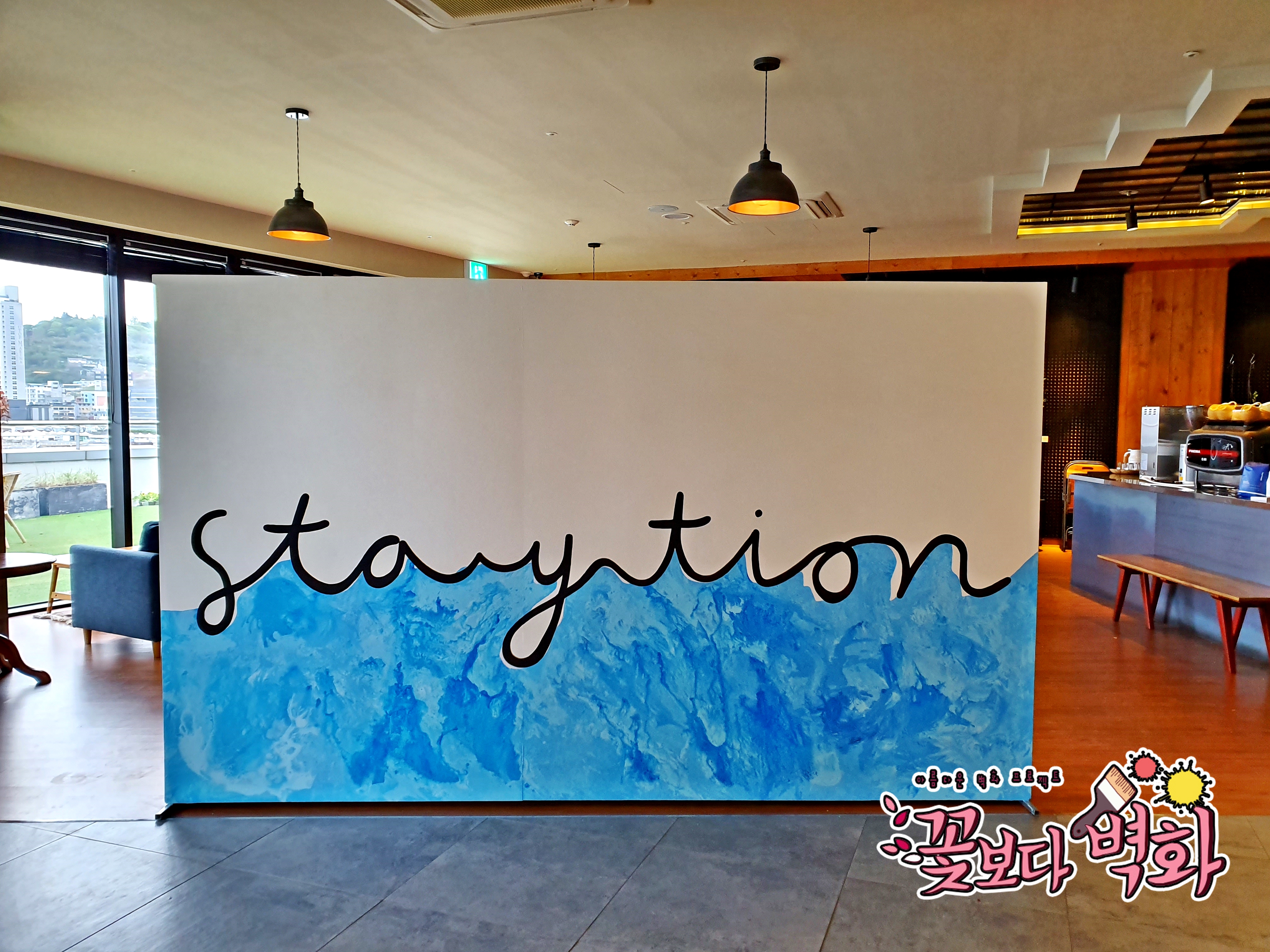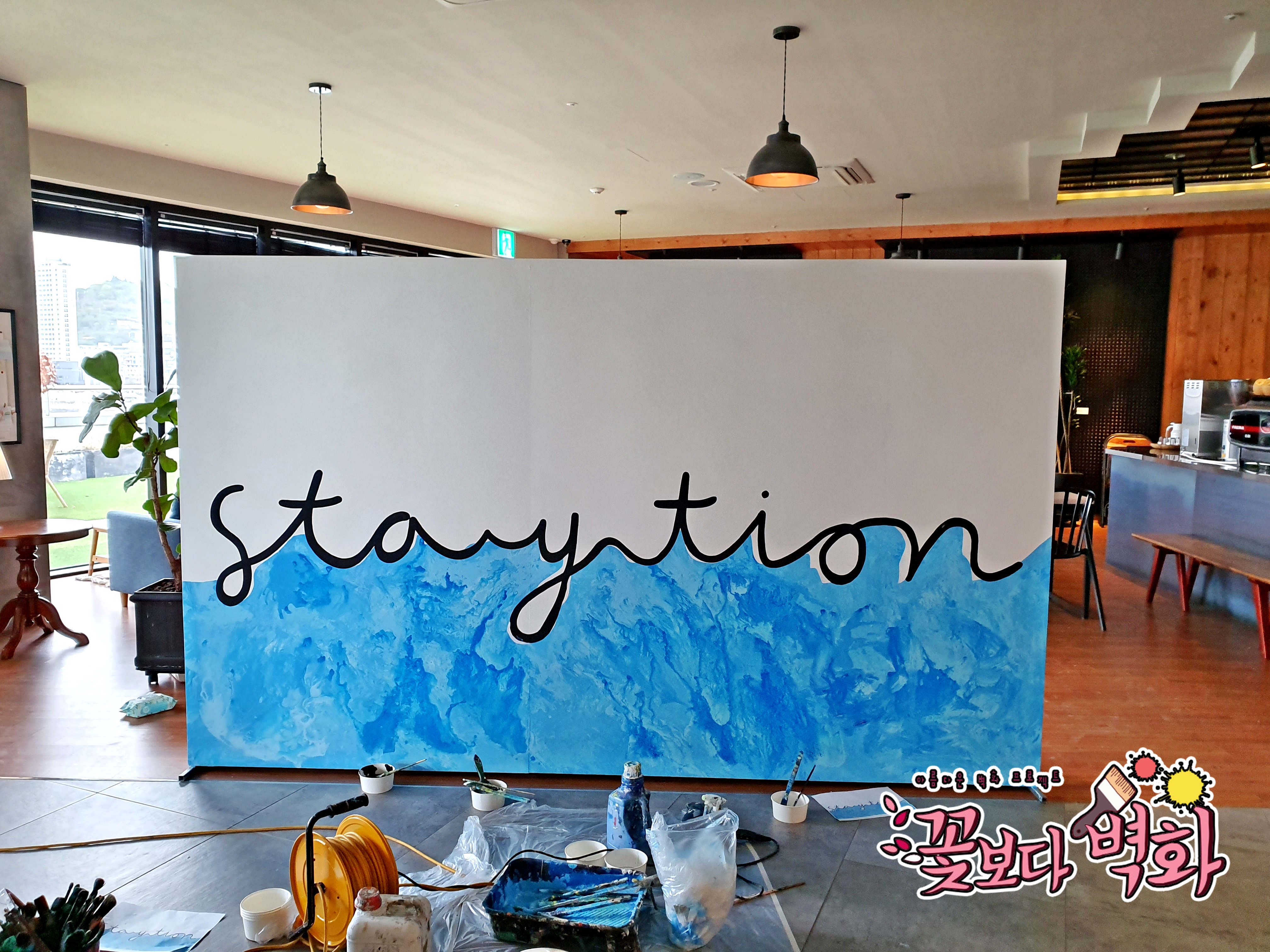 여수에 위치한 여수 스테이션 갤러리카페 파티션 로고벽화입니다.