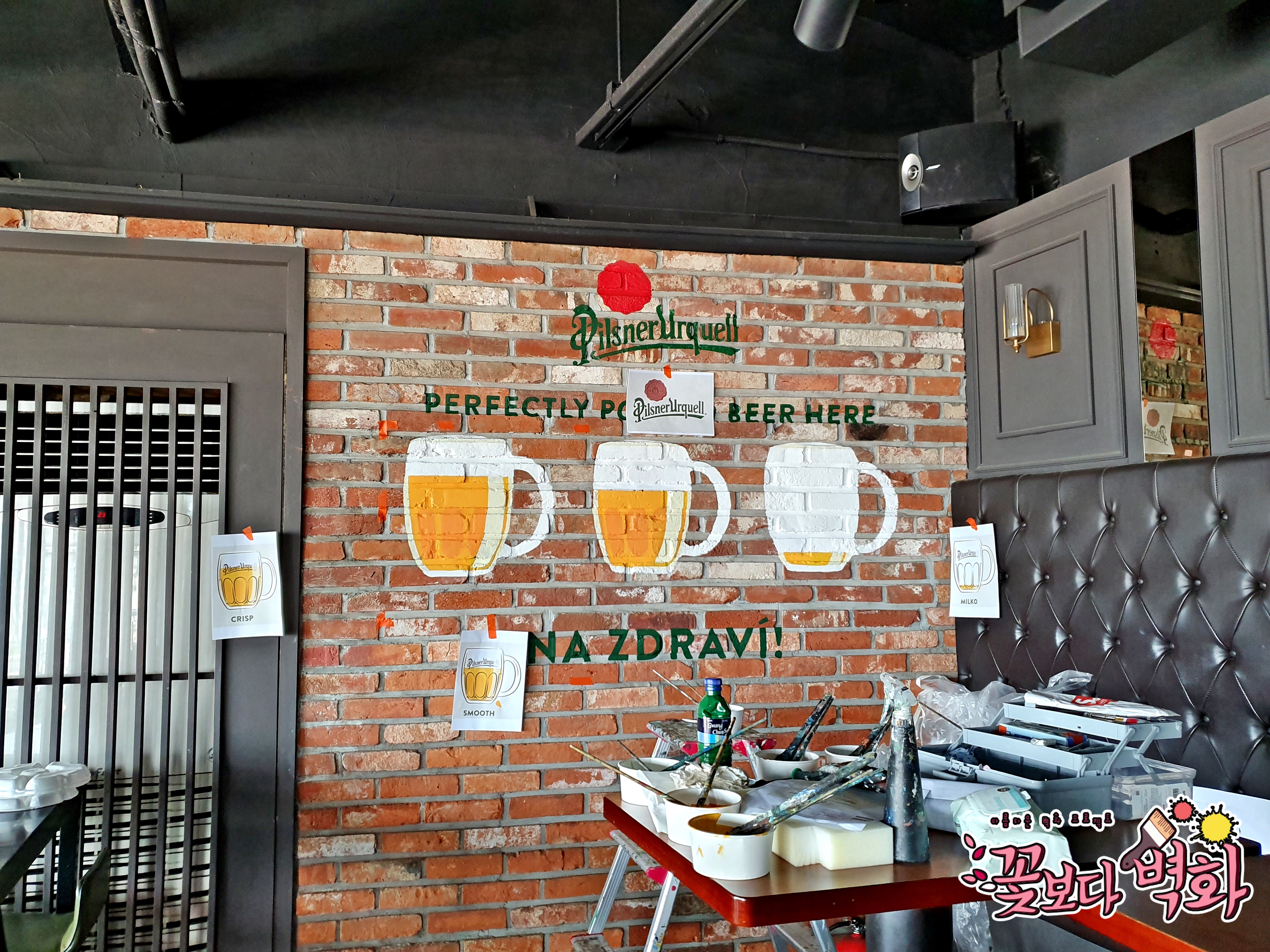 펍 사장님께서 처음에 벽면이 까다로워서 잘 나올까 걱정하셨다면서