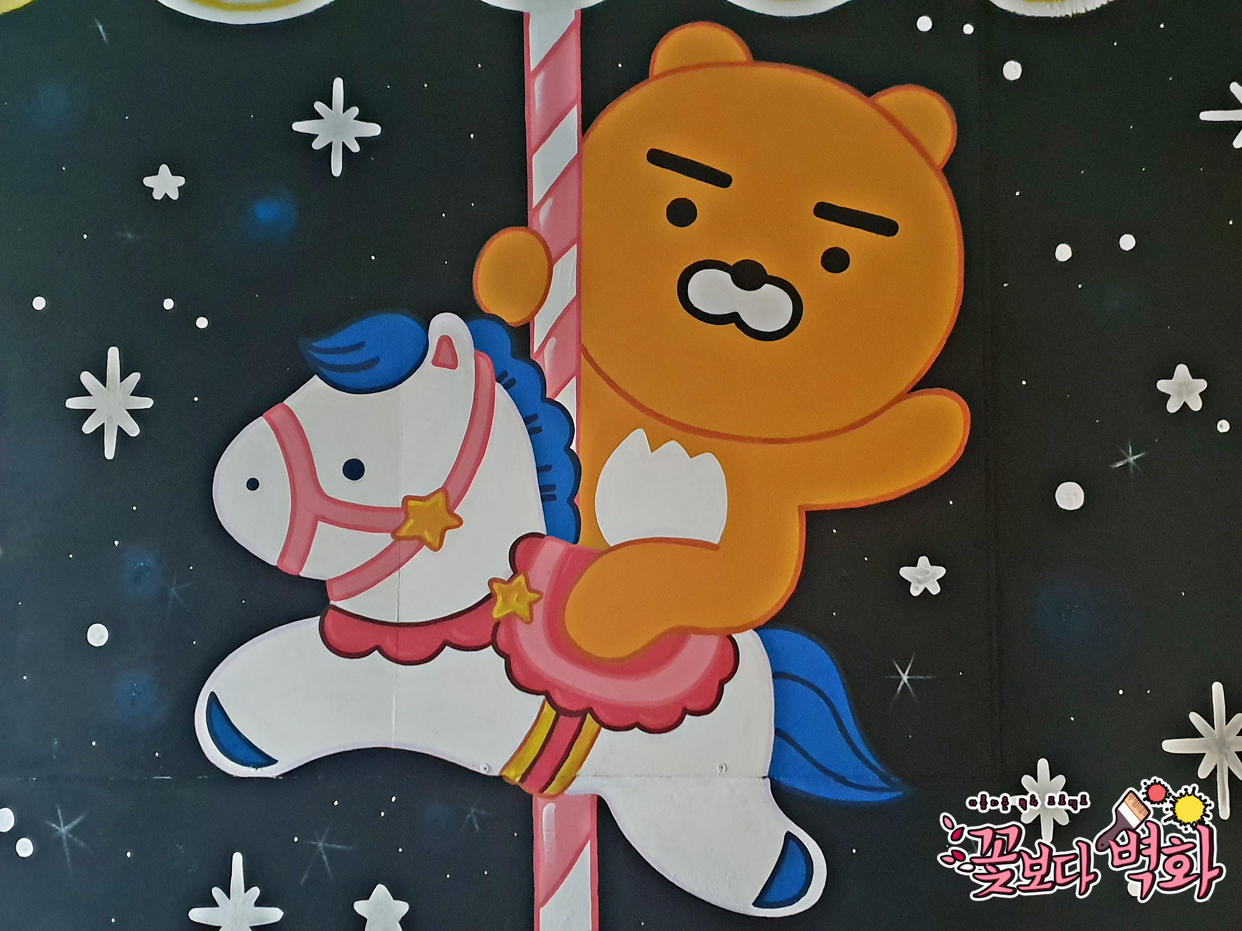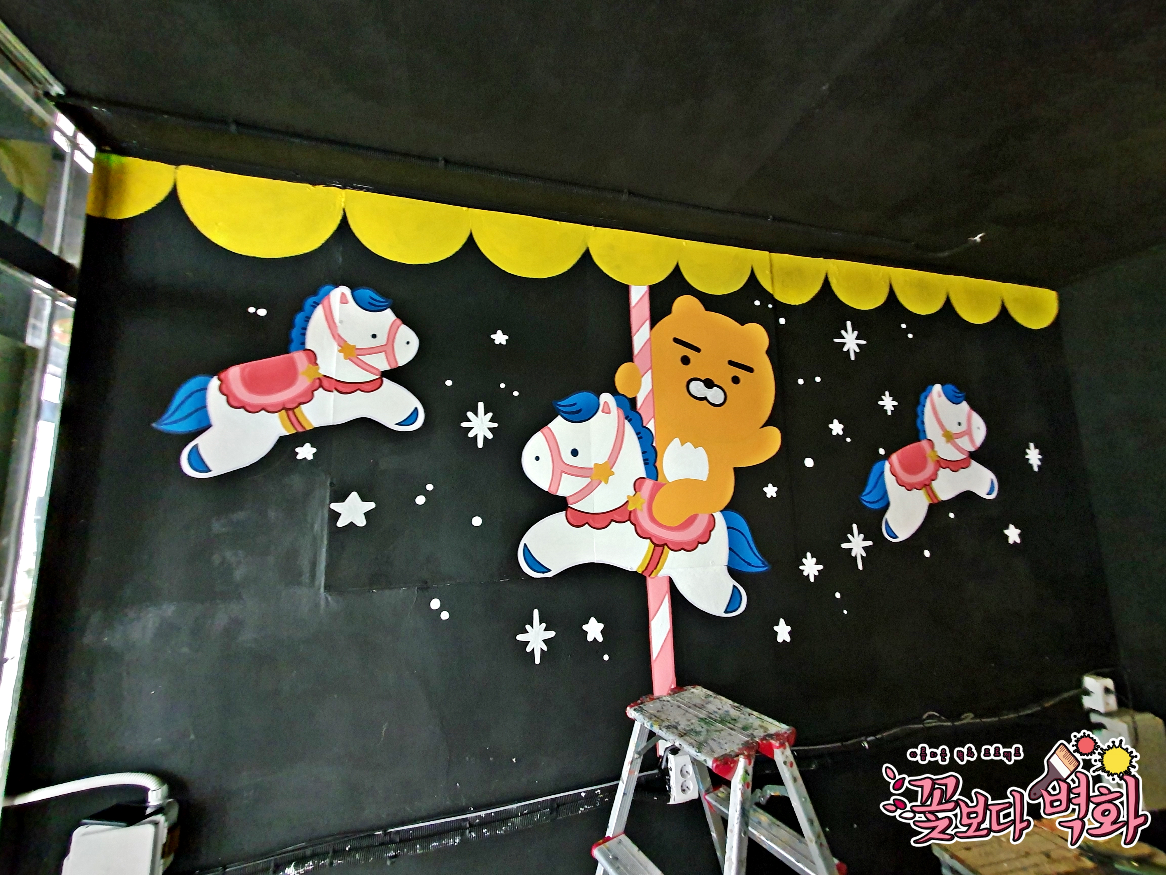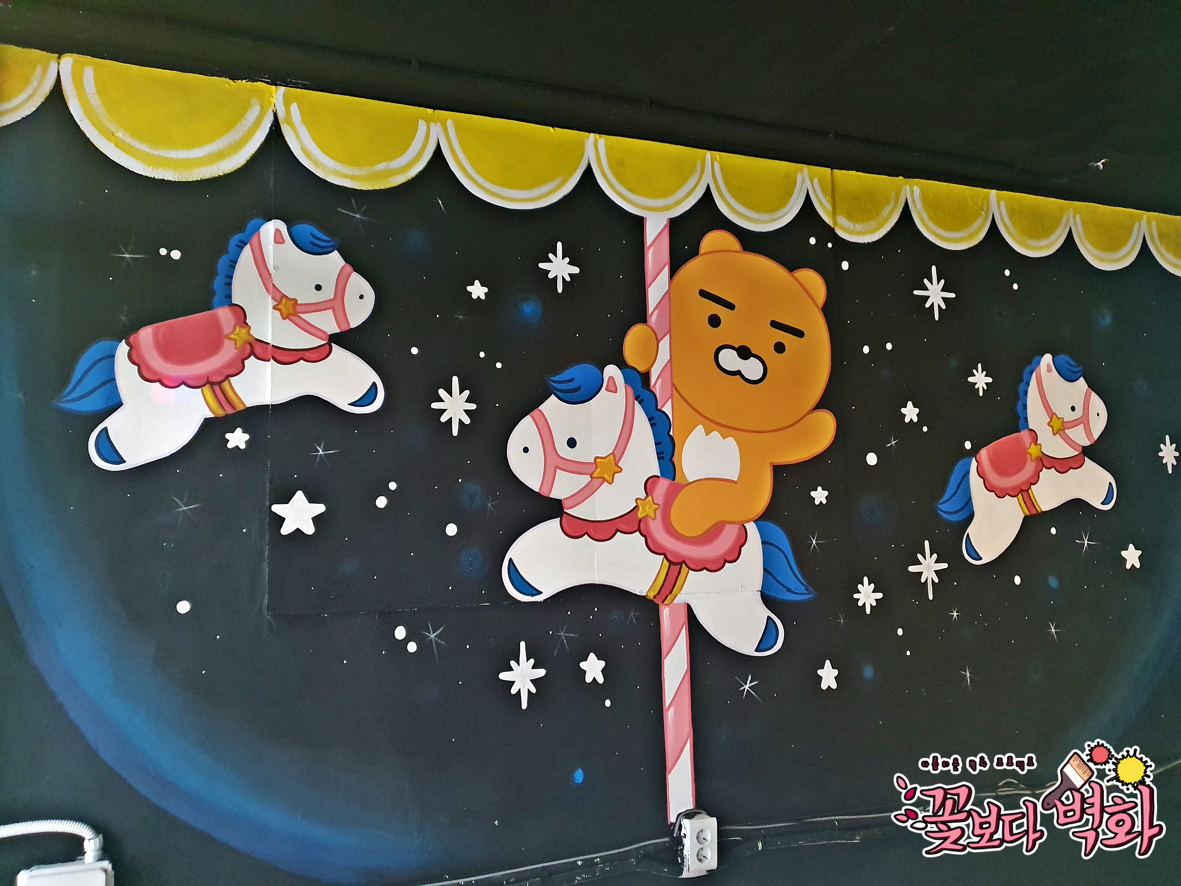 이번 라이언 캐릭터벽화는 라이언이 회전목마를 타고있는 모습을 그렸보았습니다.