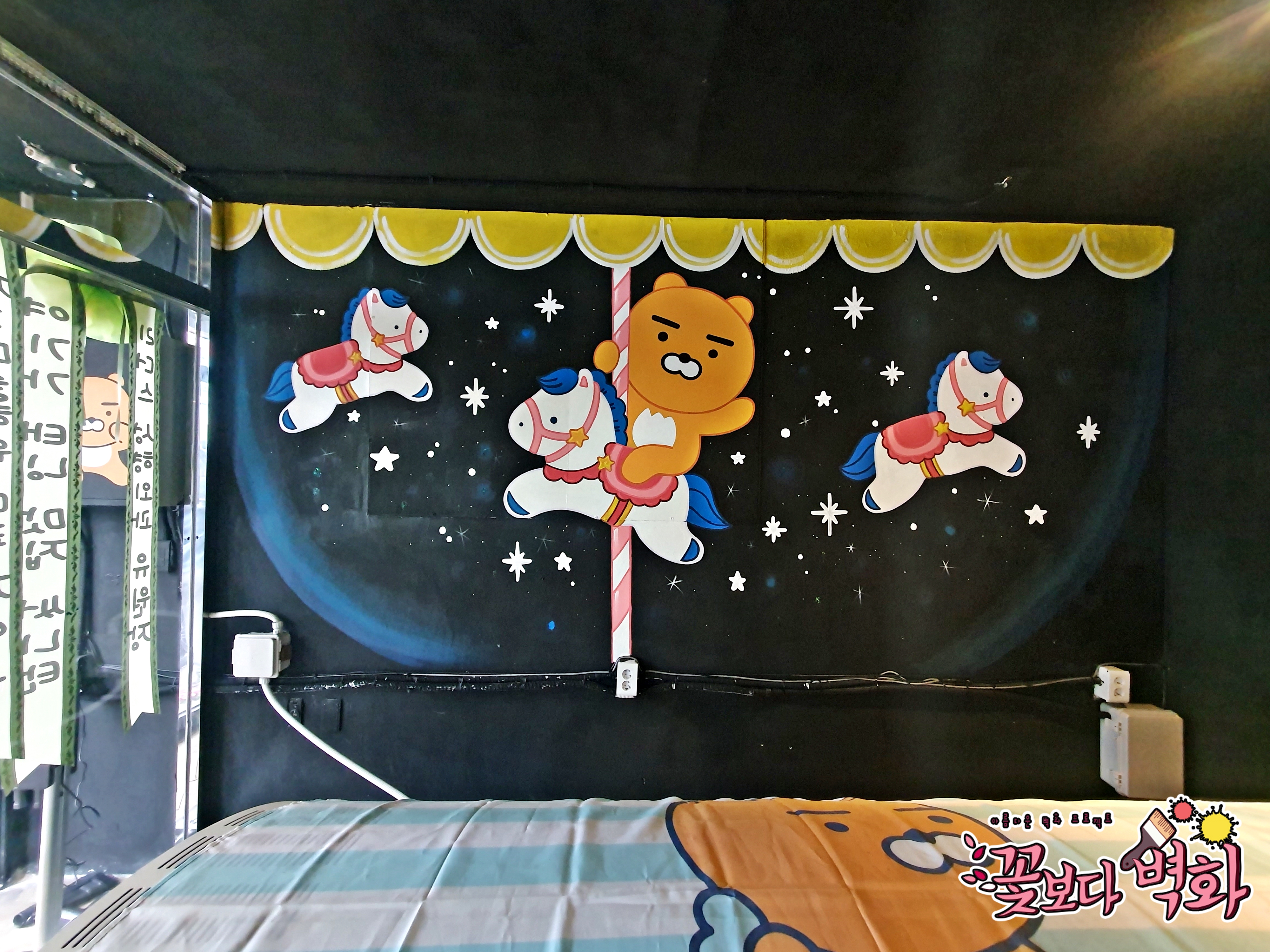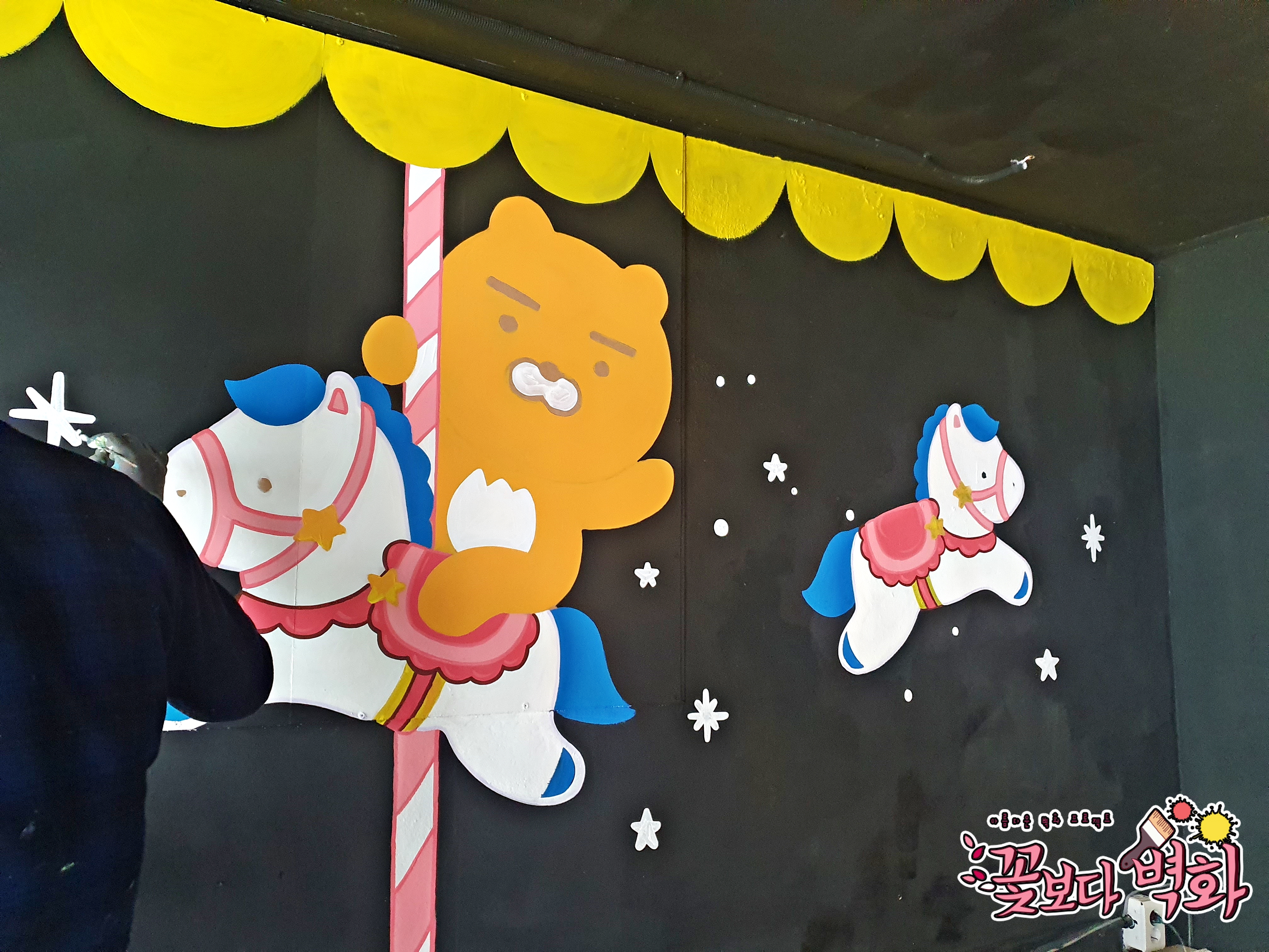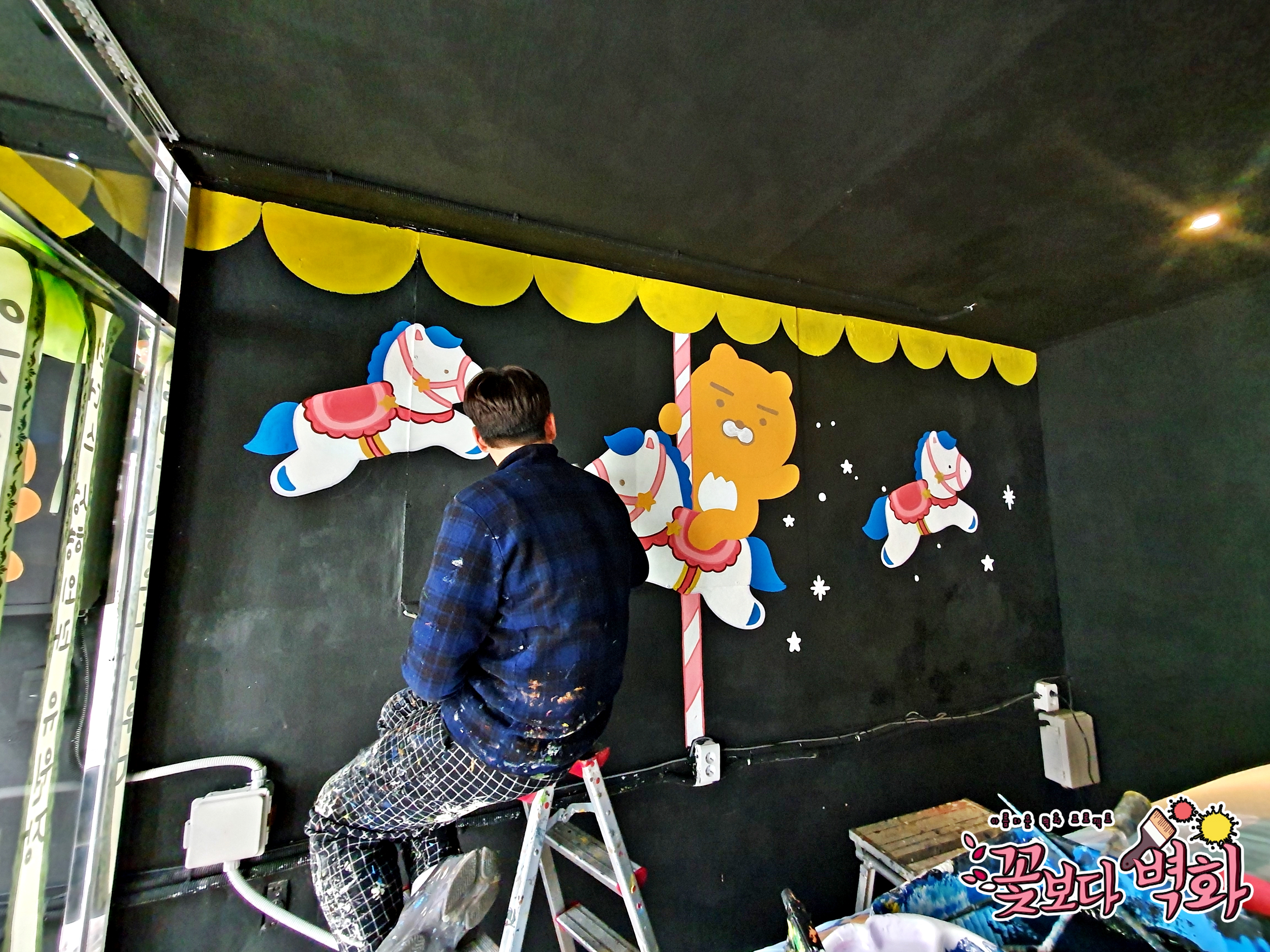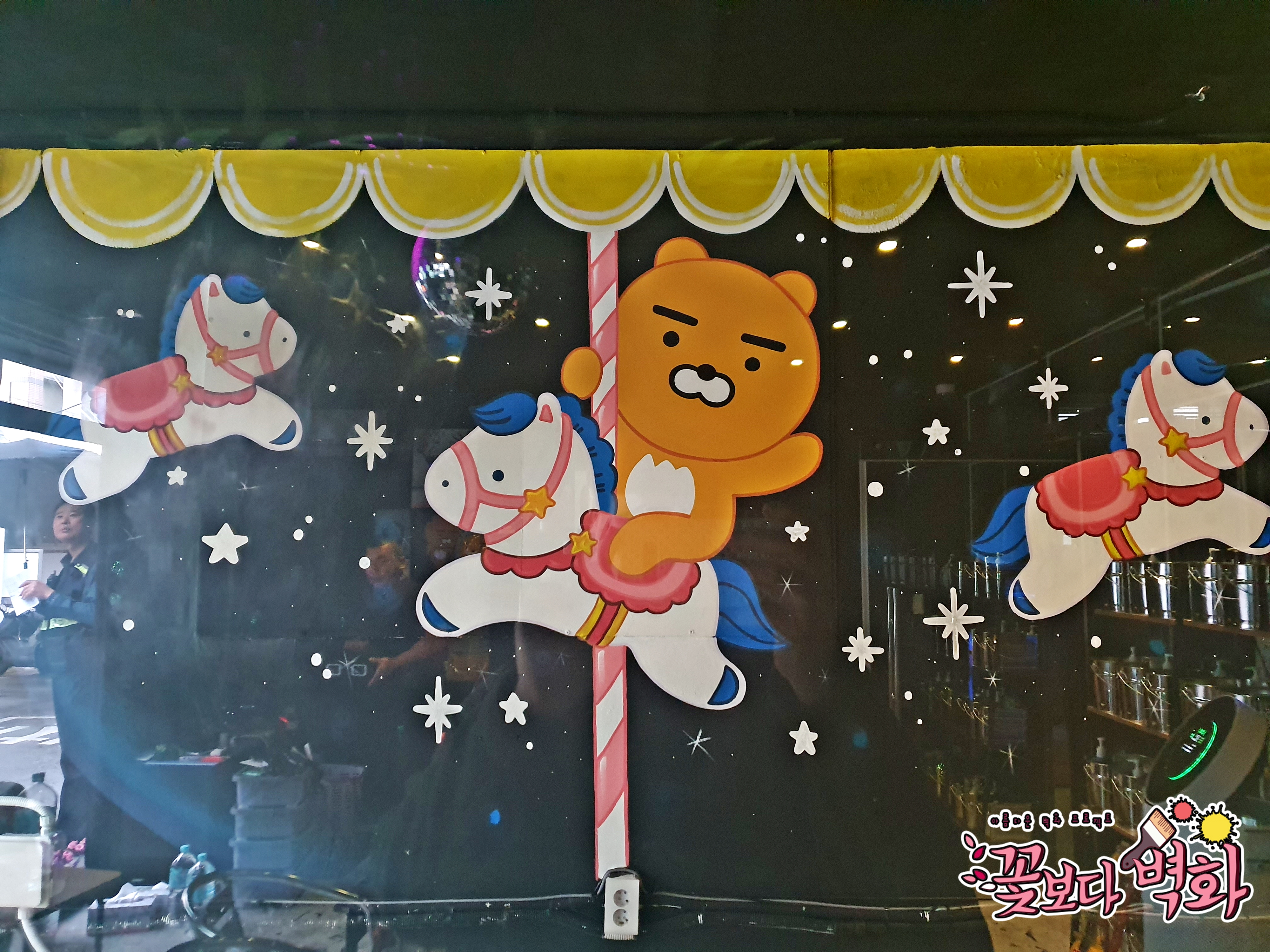 이번 라이언 캐릭터벽화는 라이언이 회전목마를 타고있는 모습을 그렸보았습니다.