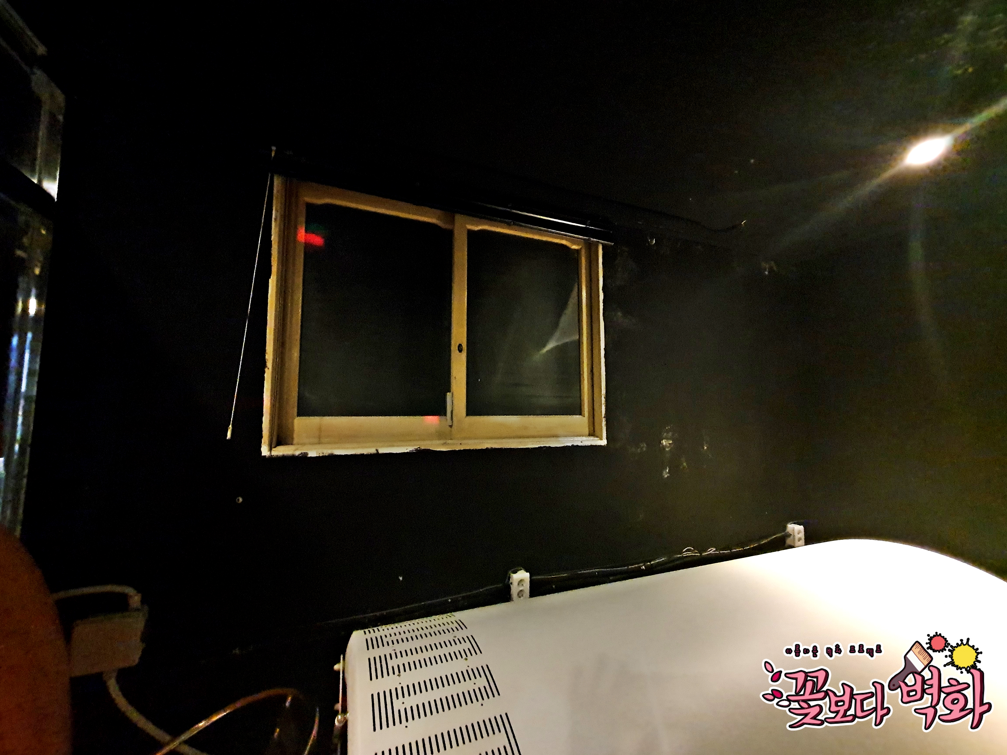 창문을 합판으로 막고, 합판도 벽면이랑 같이 블랙으로 칠하여 작업을 진행해보겠습니다.