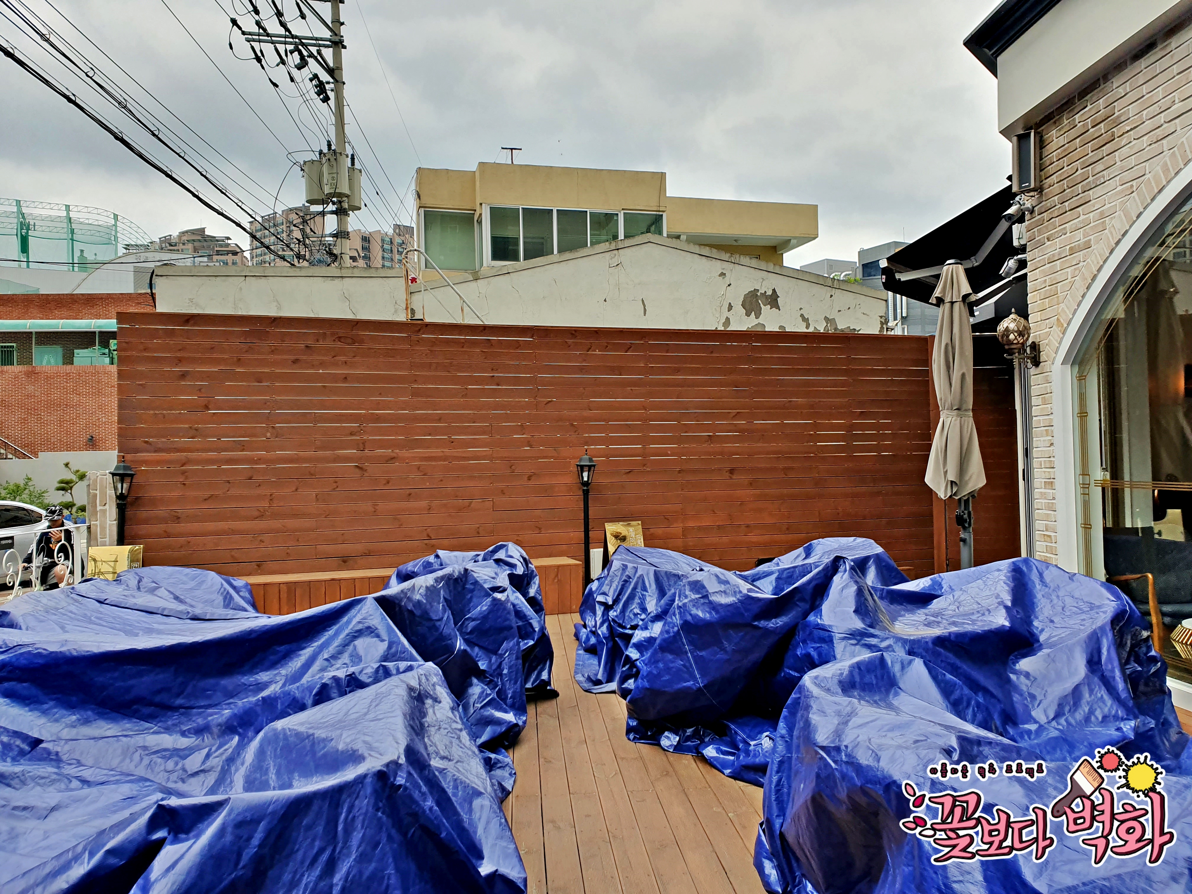 외부벽면이기 때문에 마무리 코팅작업도 완료되었구요.