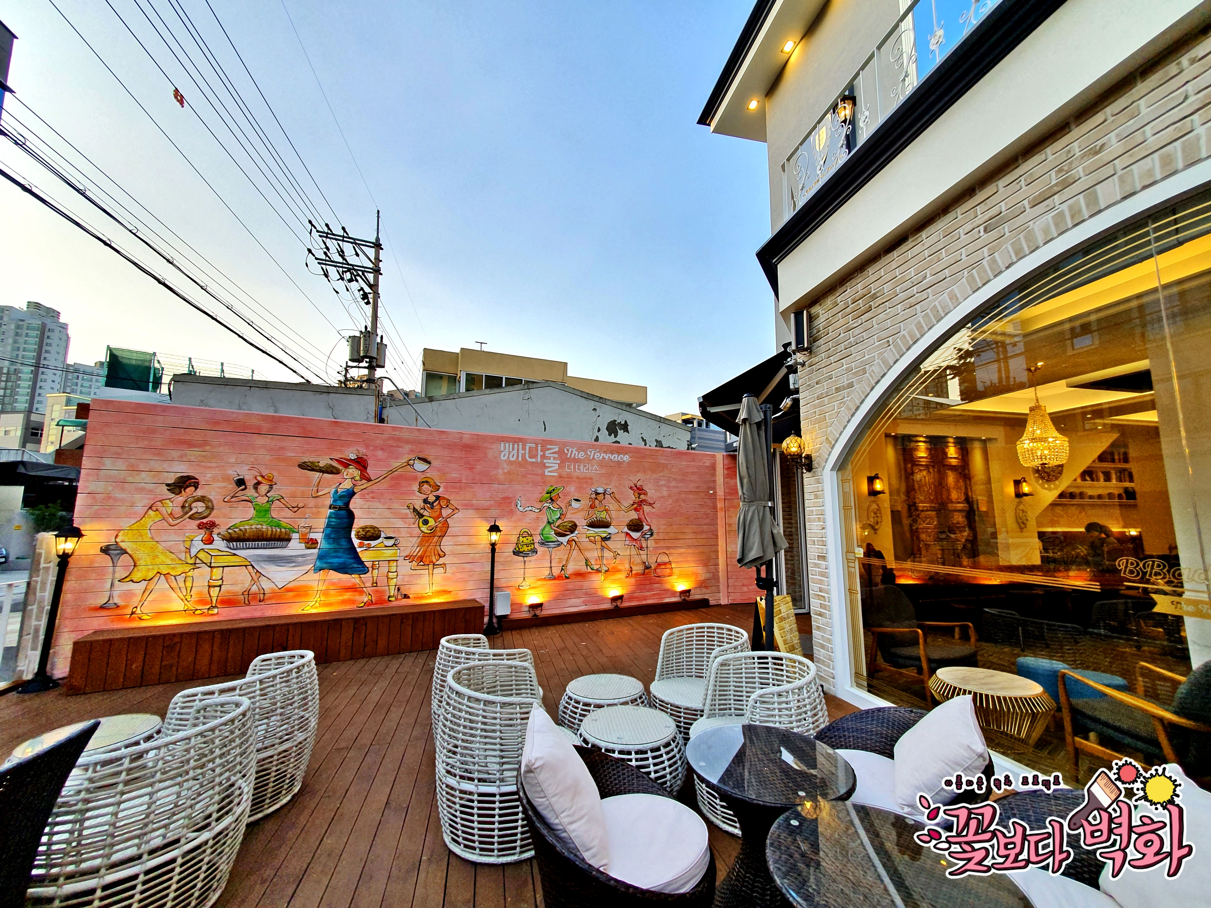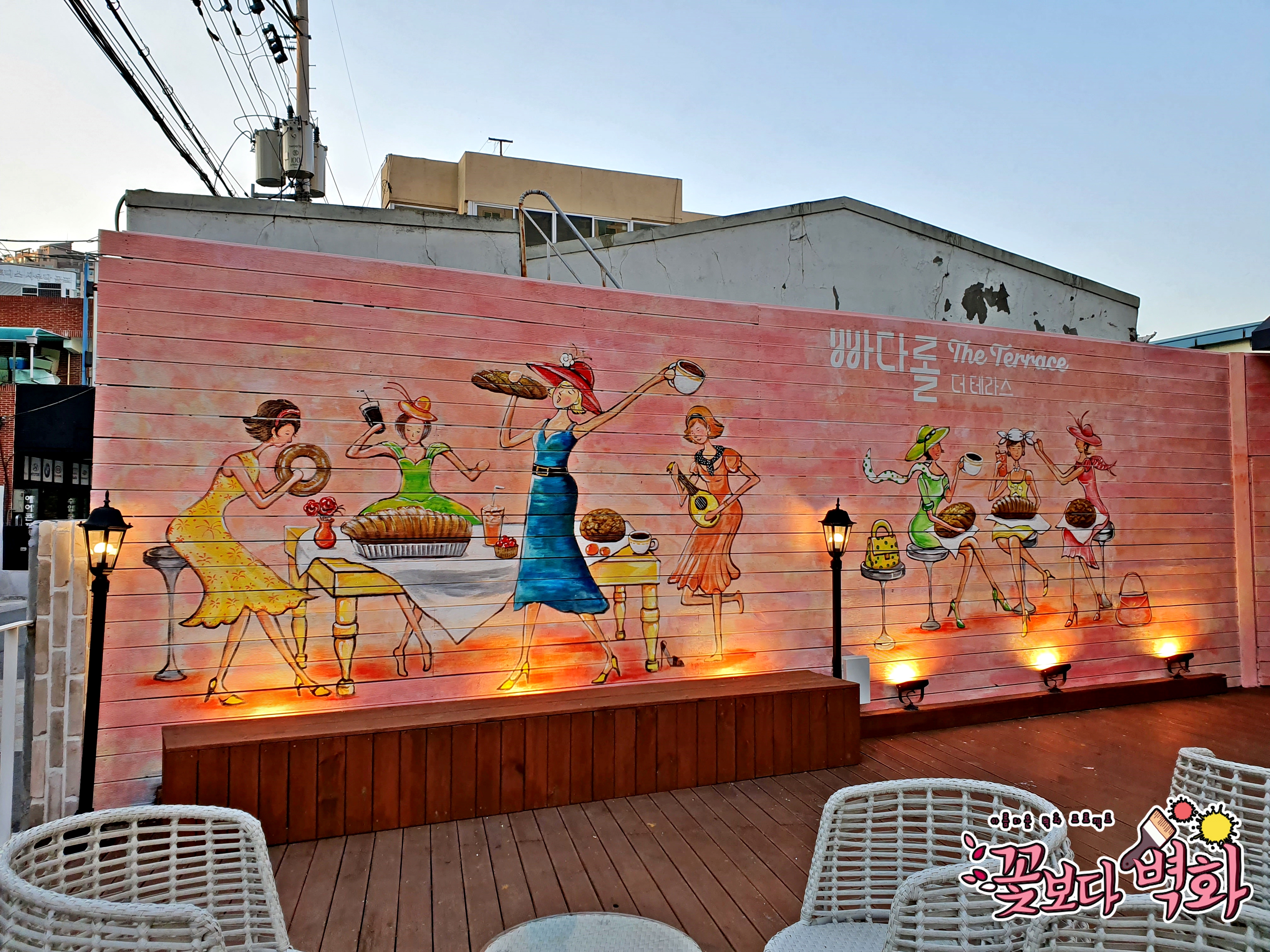 대구 월성동에 위치한 빠다롤더테라스 베이커리 카페 외부 벽화입니다.