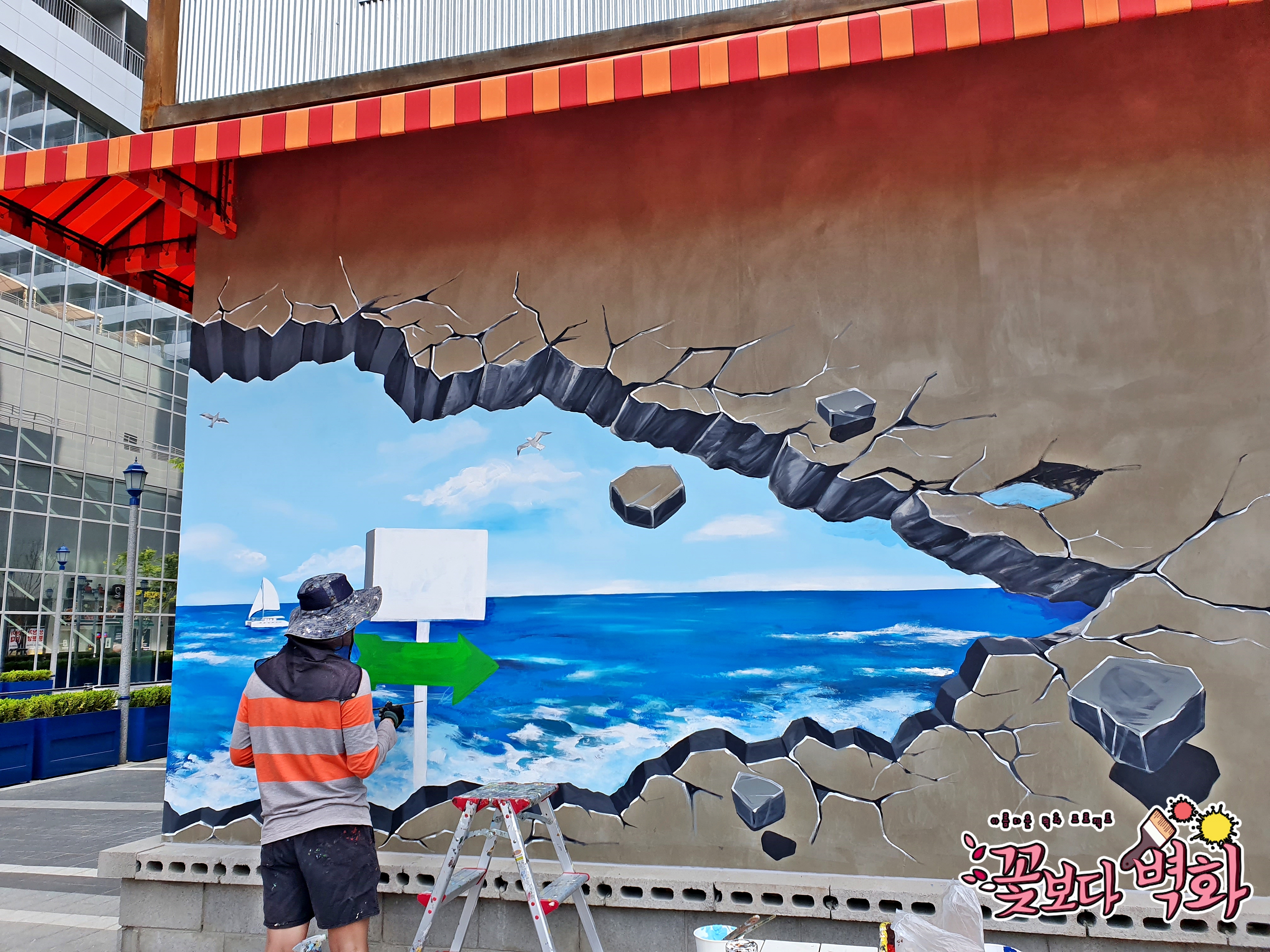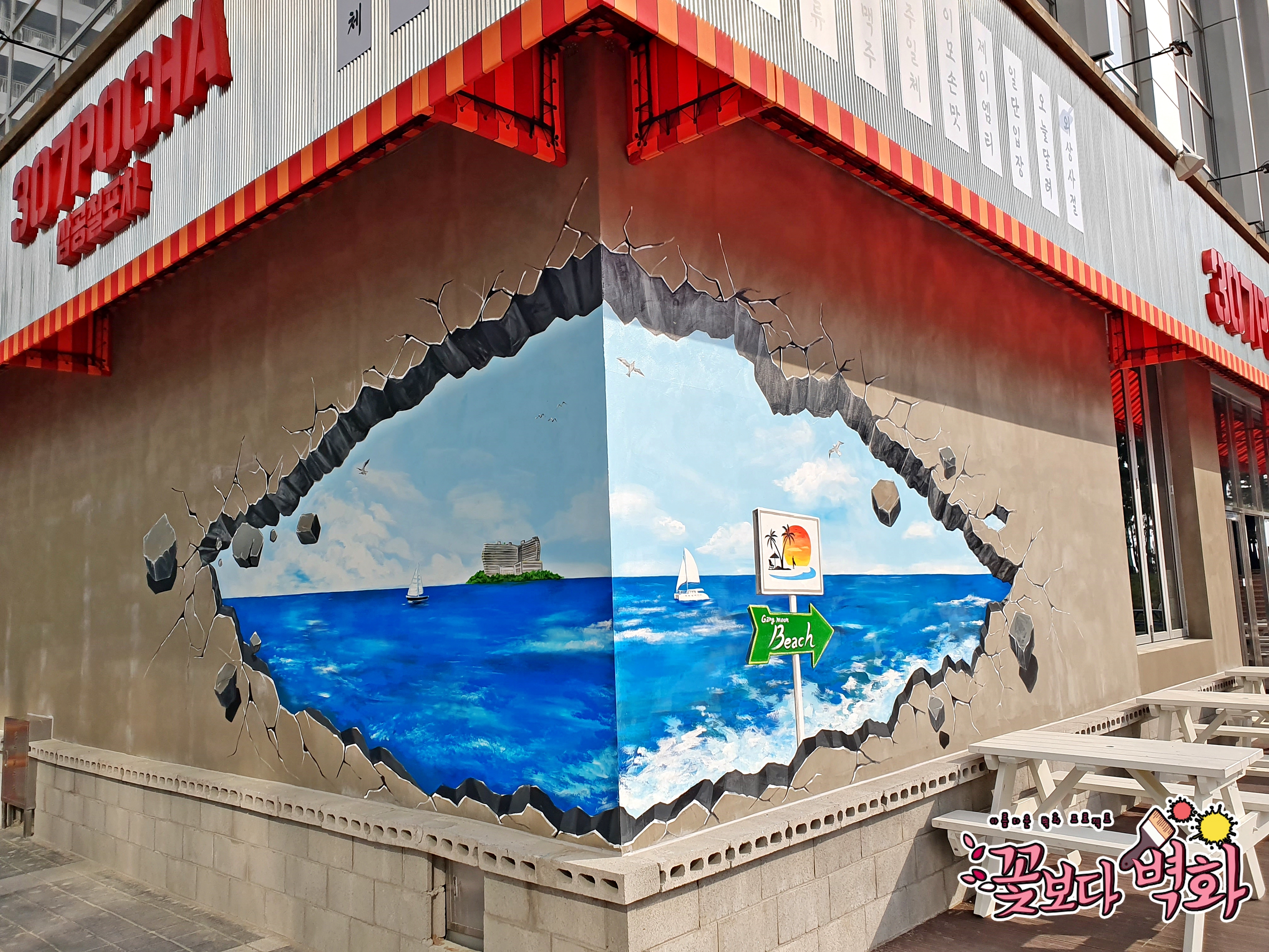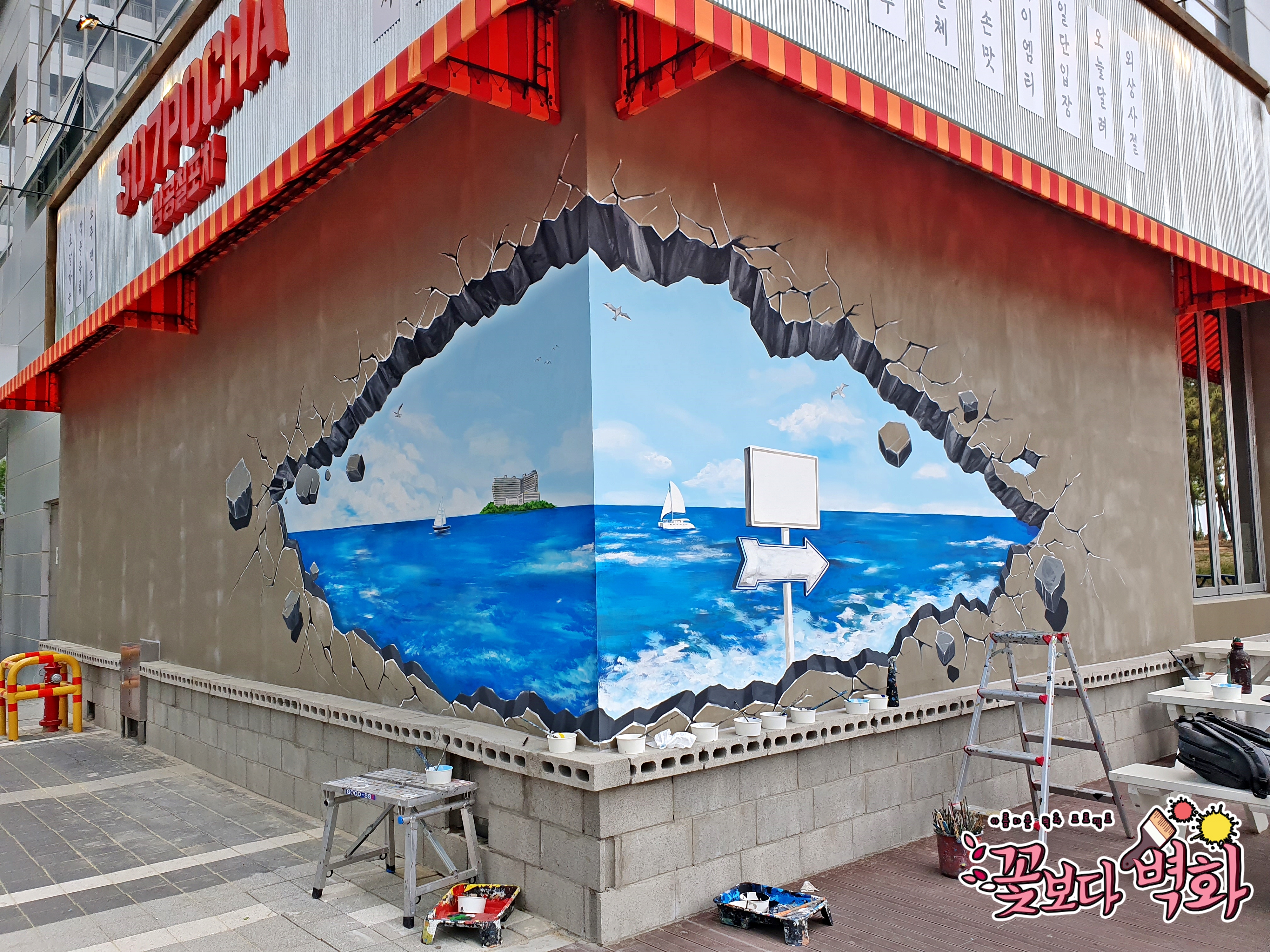 트릭아트를 이용하여 포토존 바다를 그렸었죠