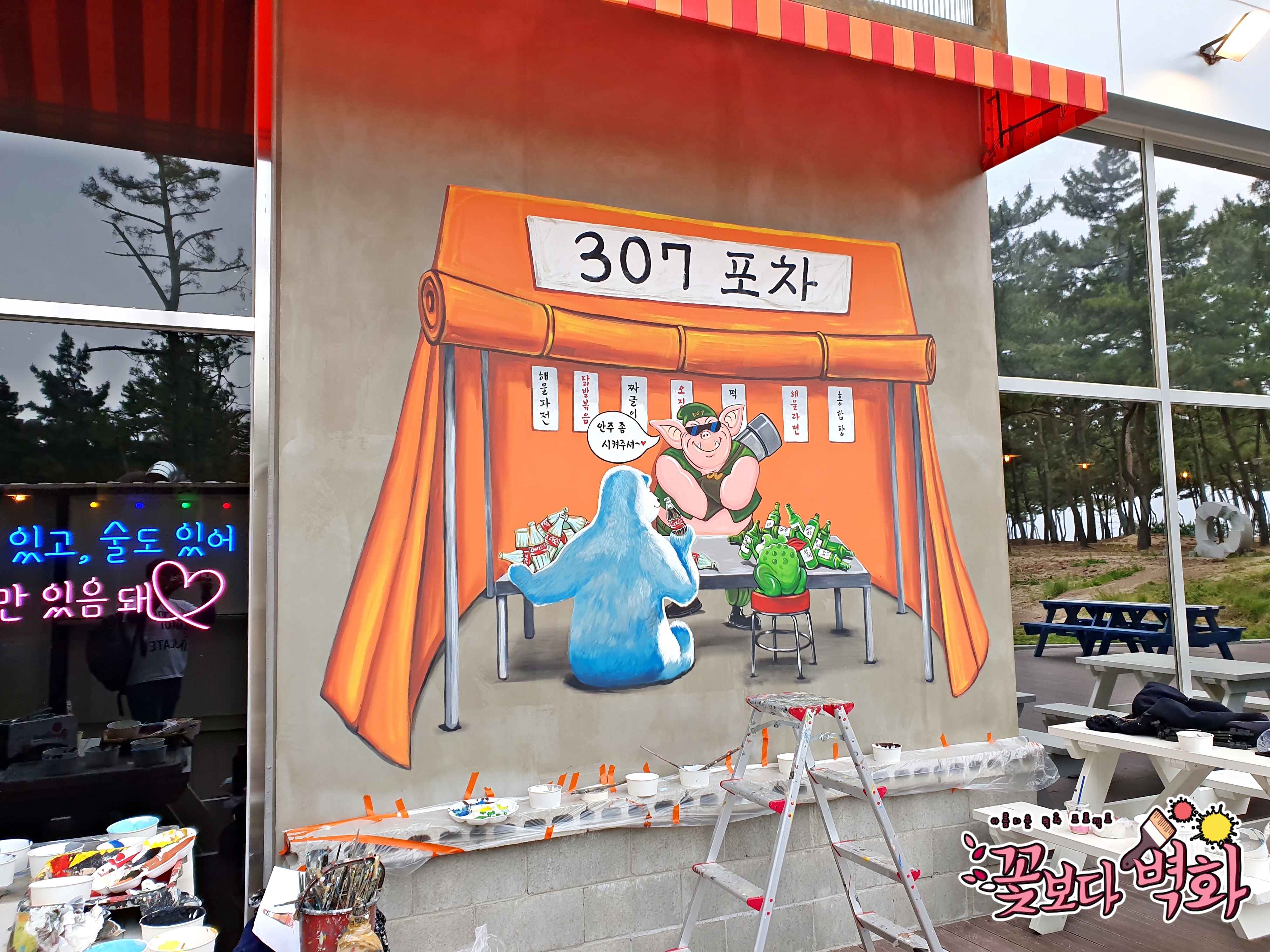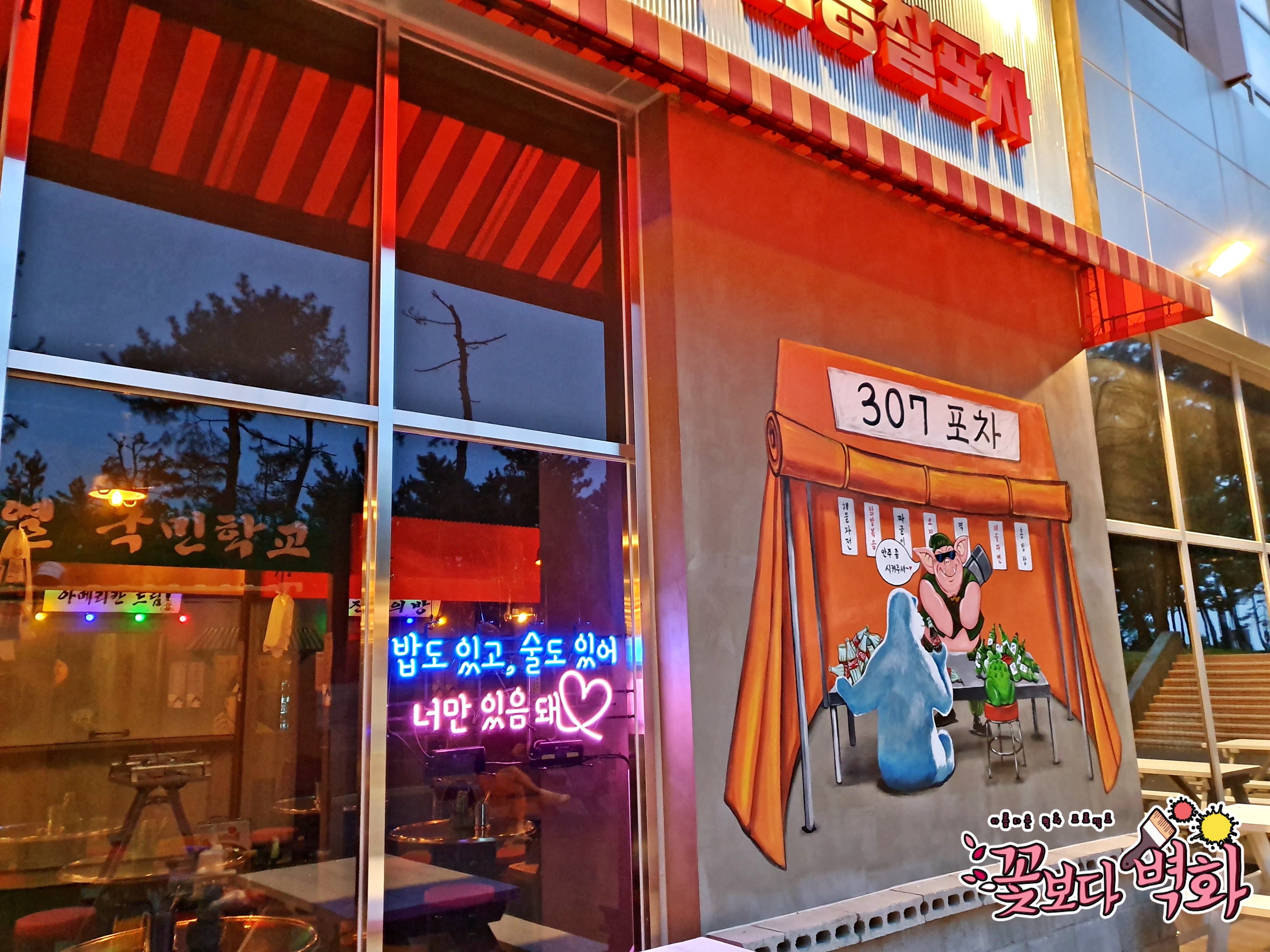307포차의 조명들이 켜지니 벽화가 더 빛이나네요^^