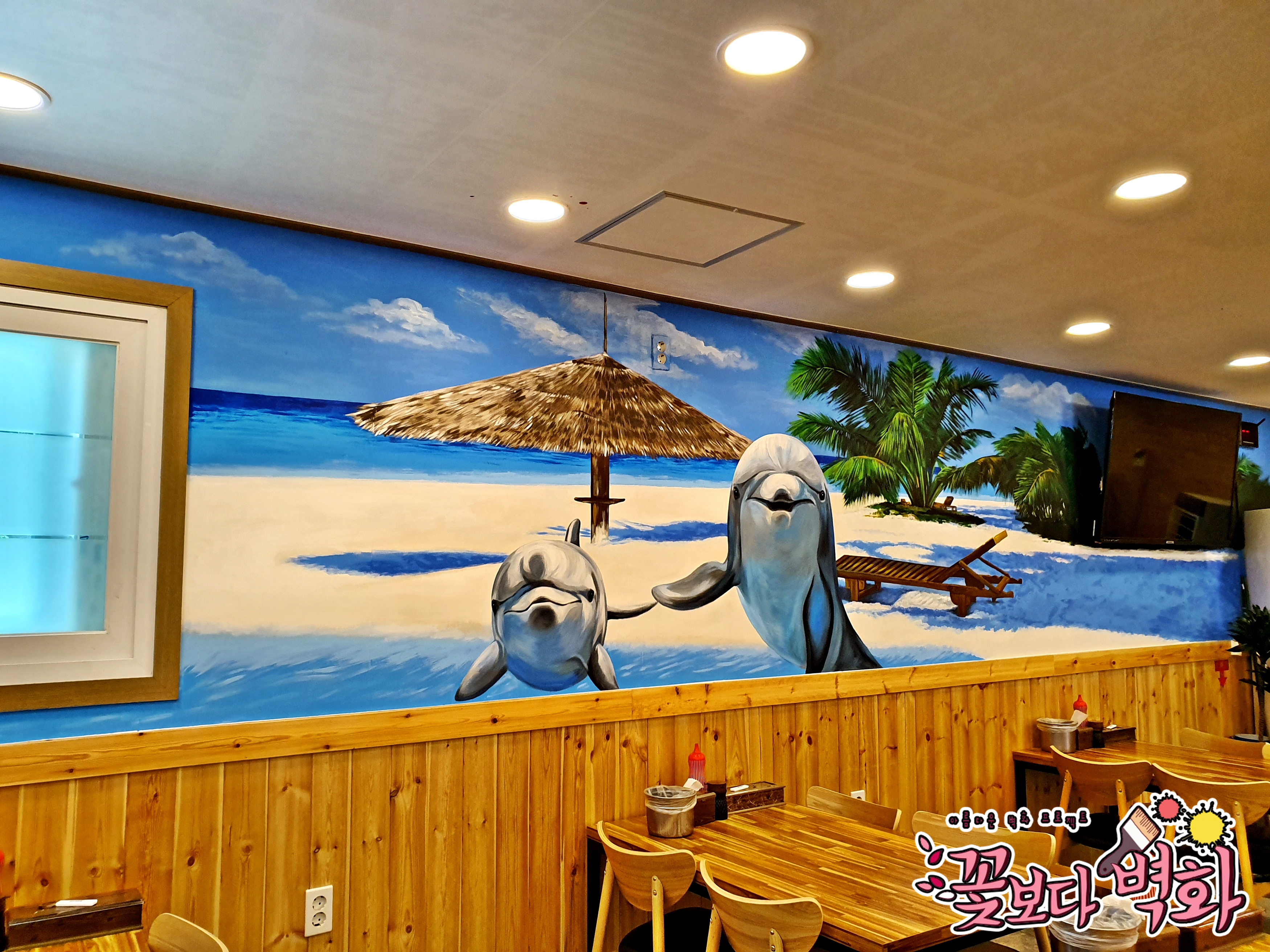 대구 신암동 해변과 돌고래가 있는 횟집 인테리어 벽화