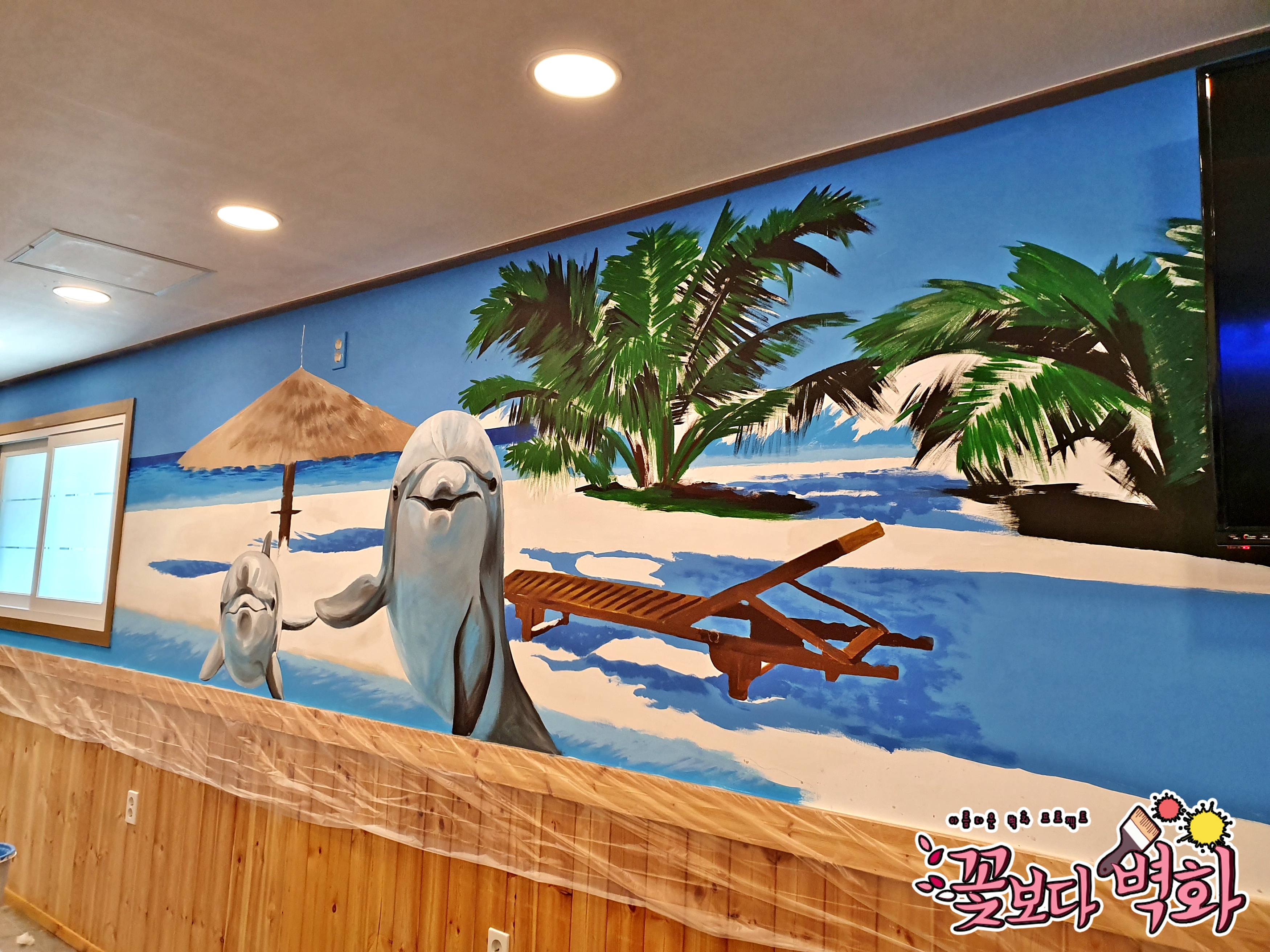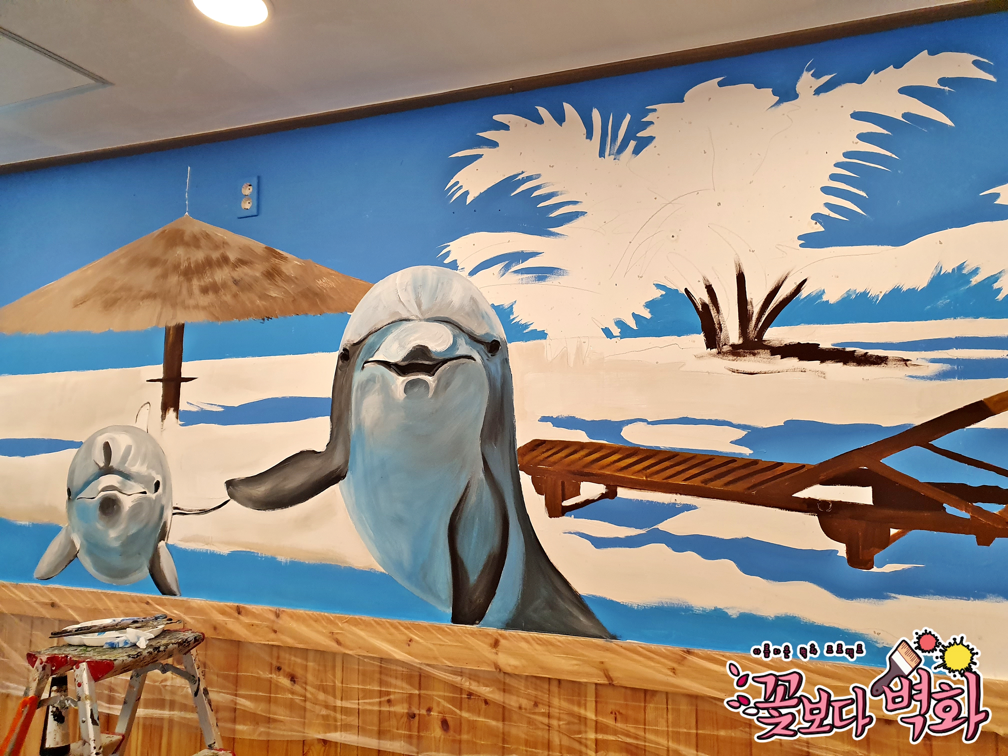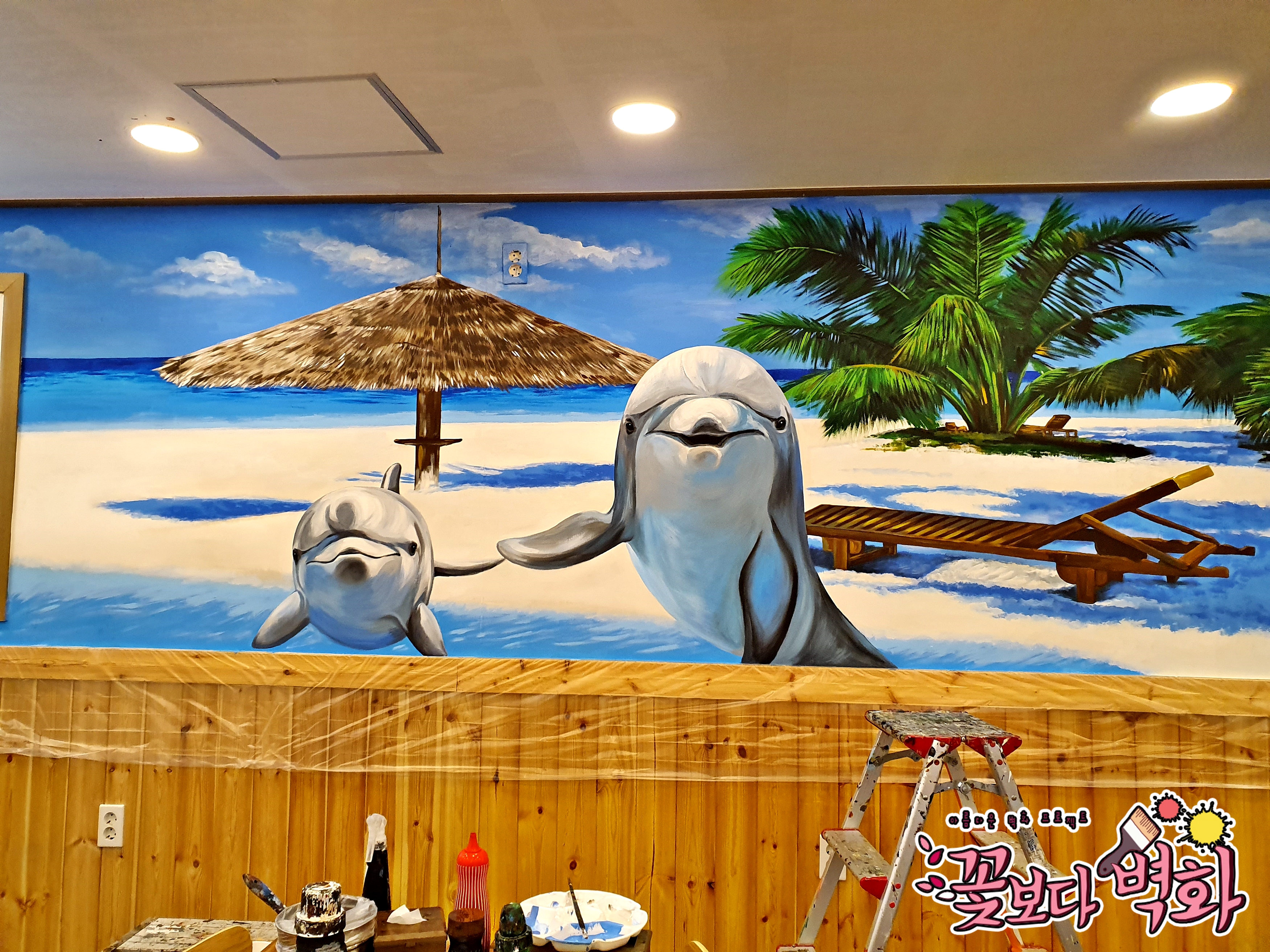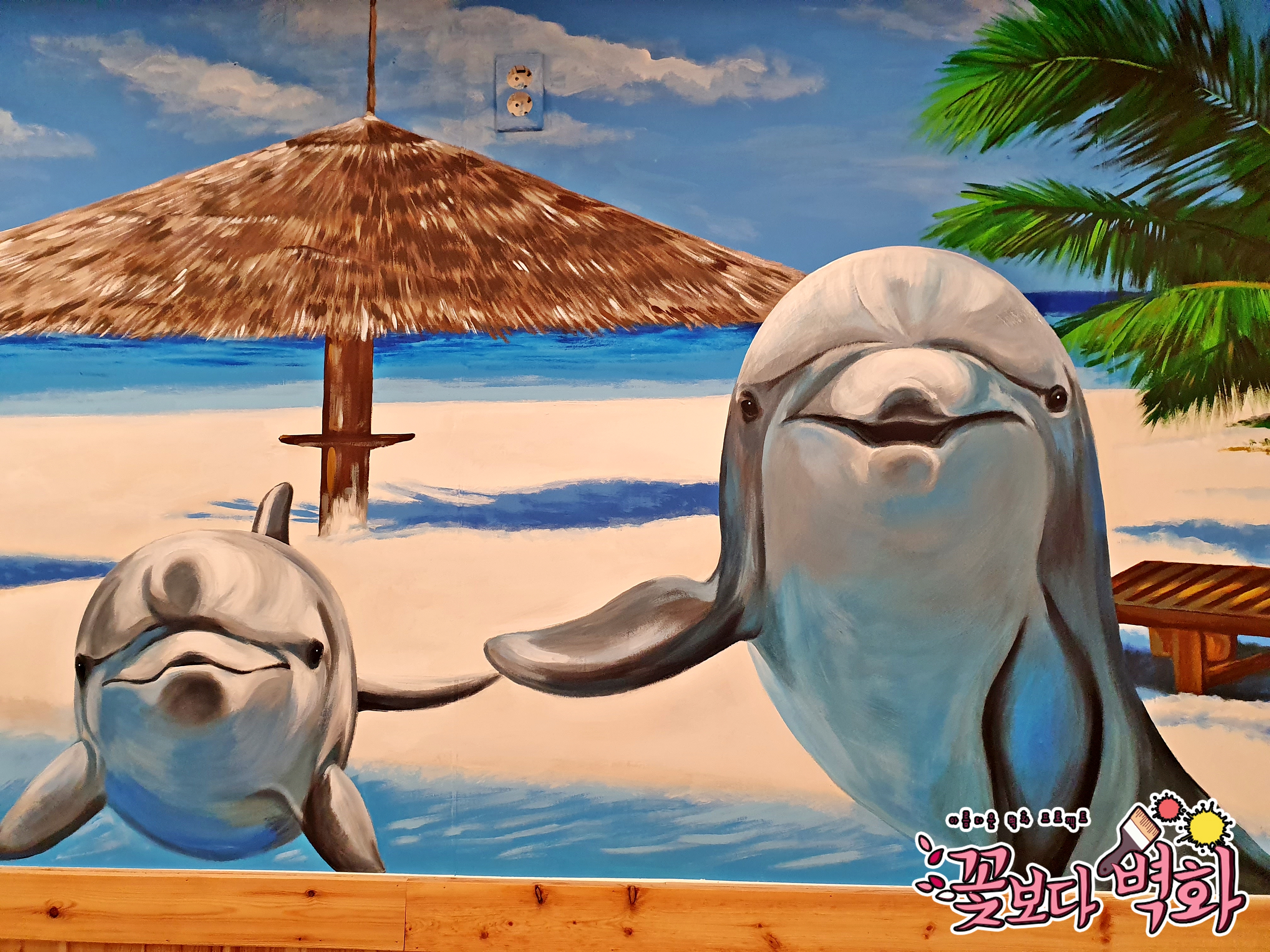 횟집에 너무나도 잘 어울리는 해변벽화가 탄생하였습니다.