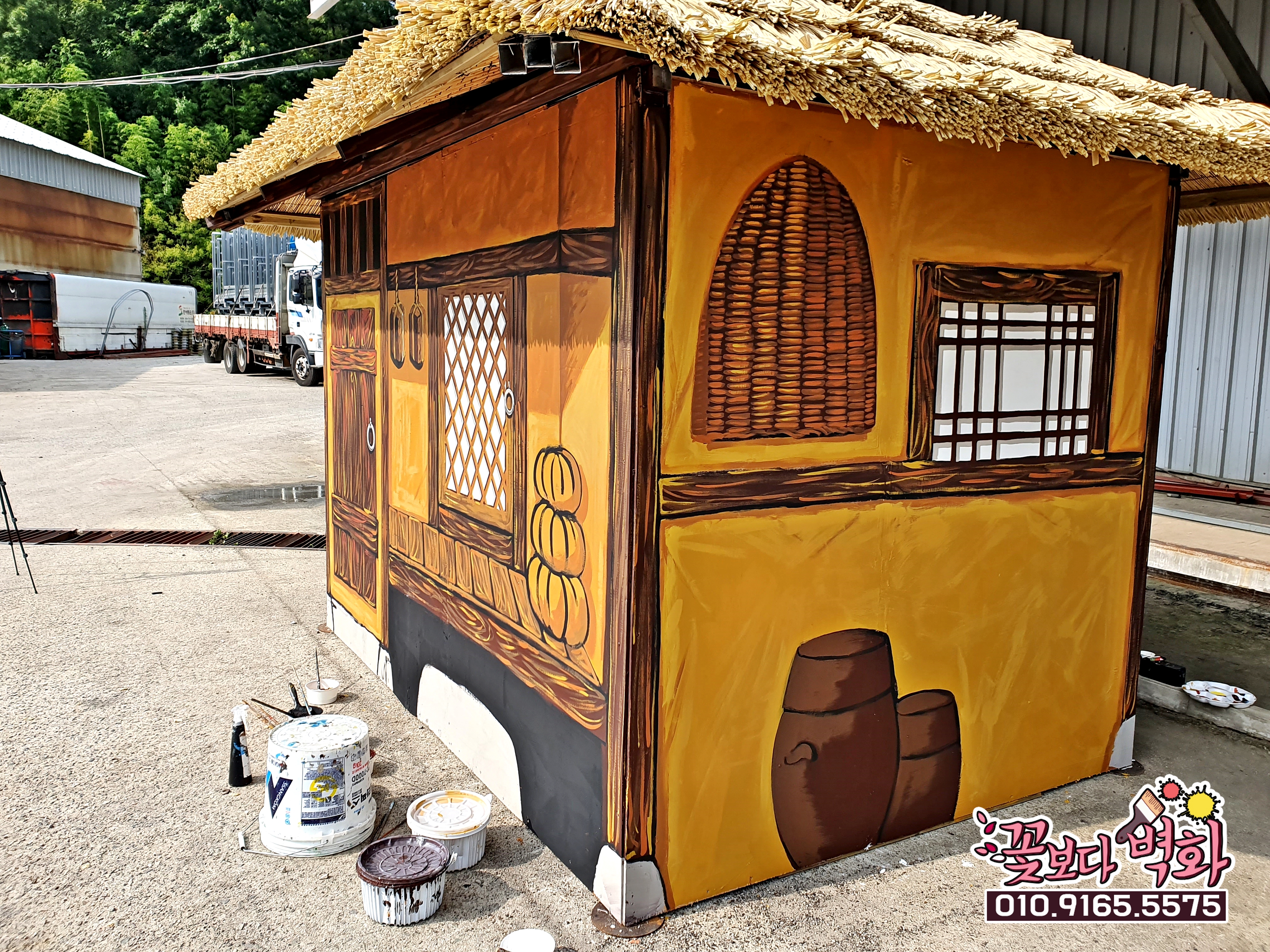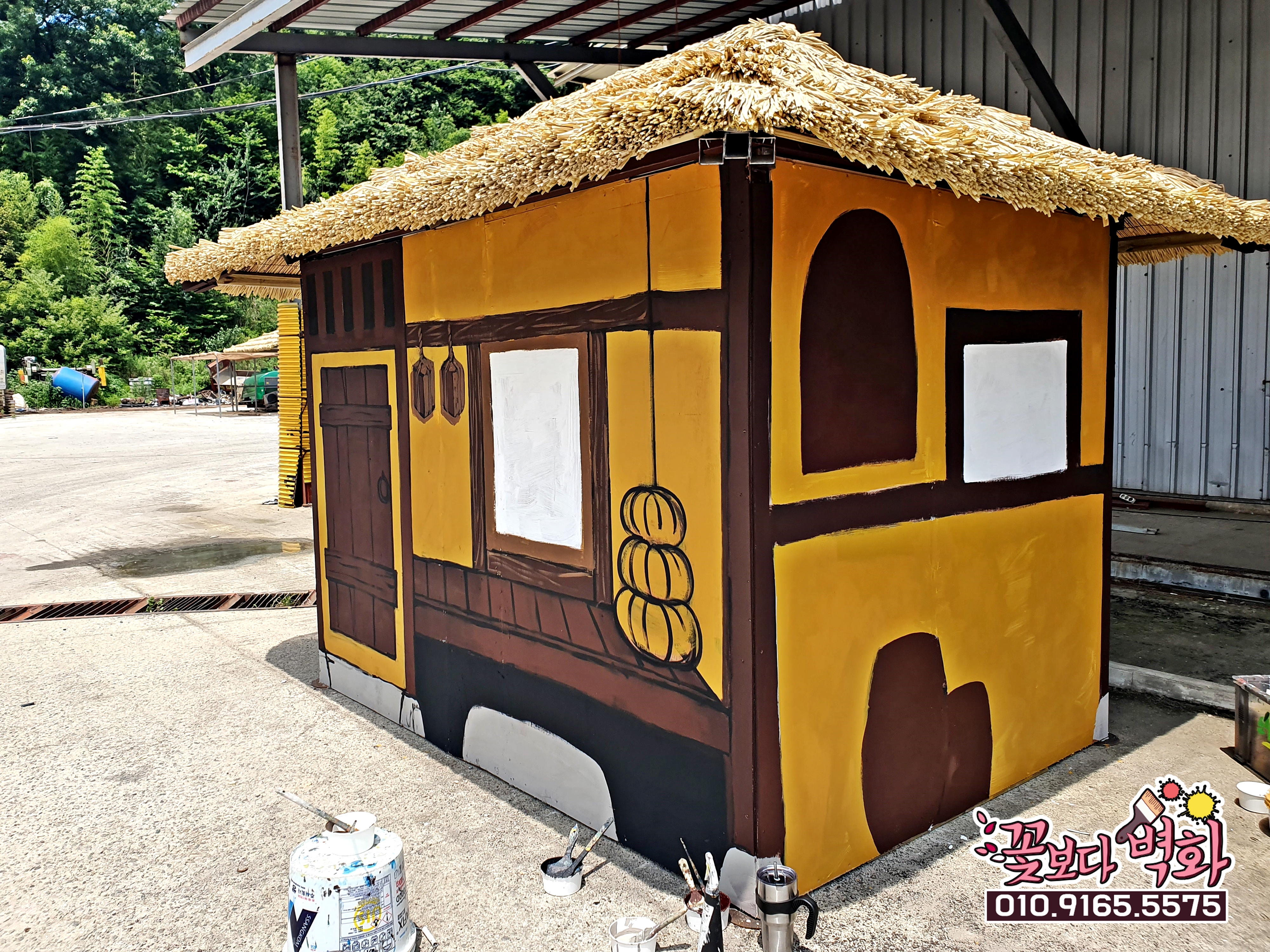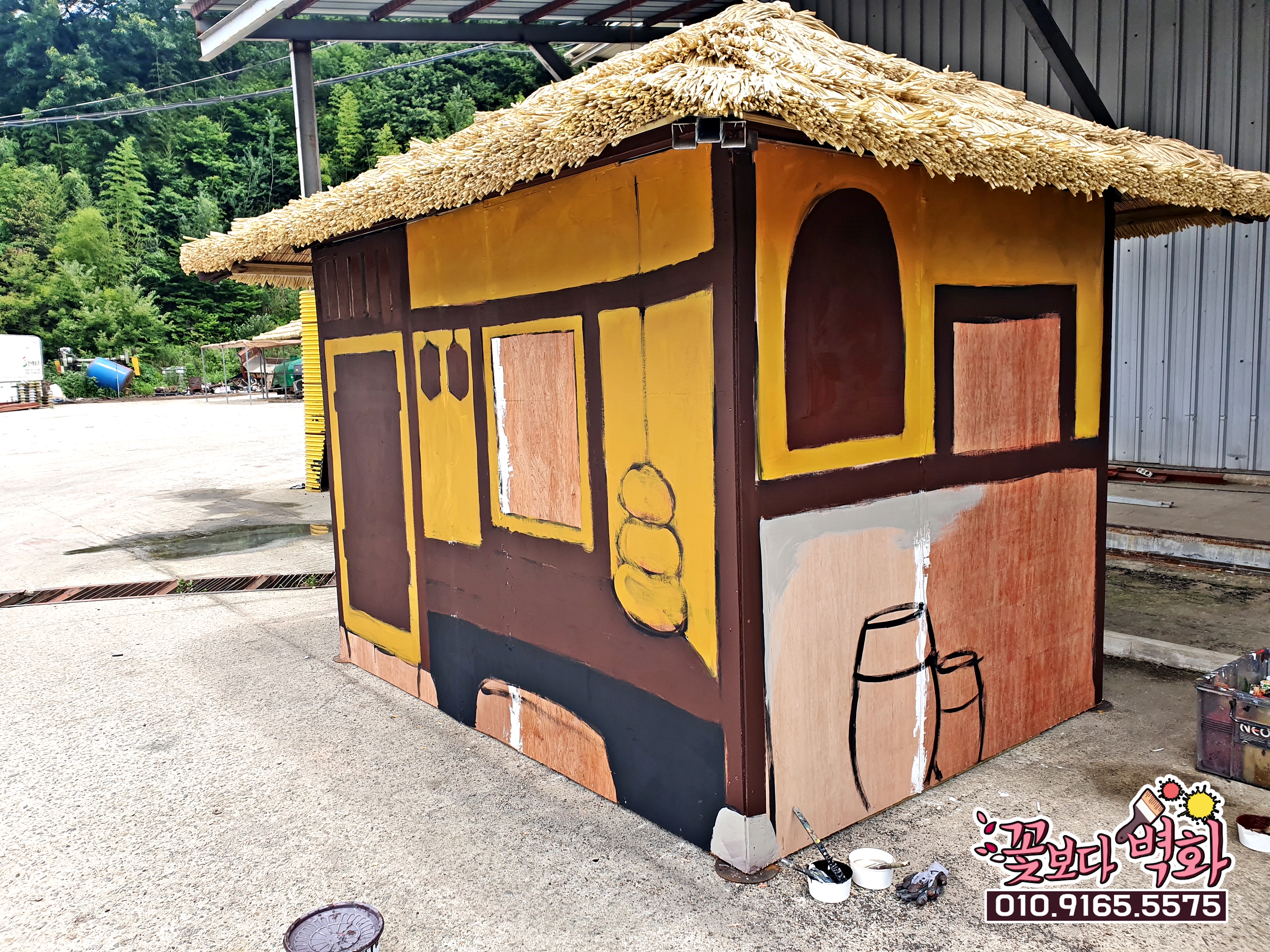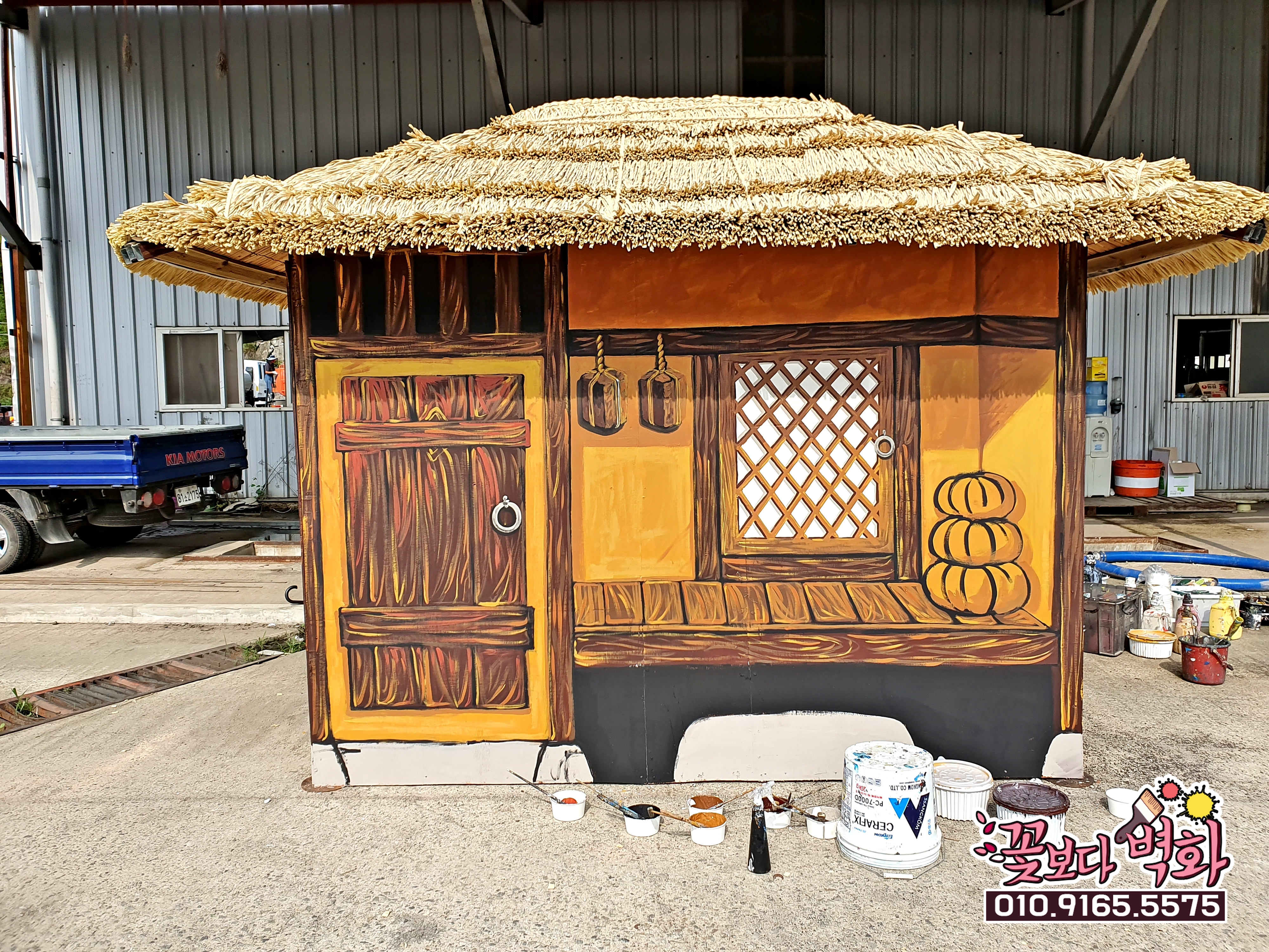 초가집 조형물에 벽화제작을 한 모습을 보여드릴게요~