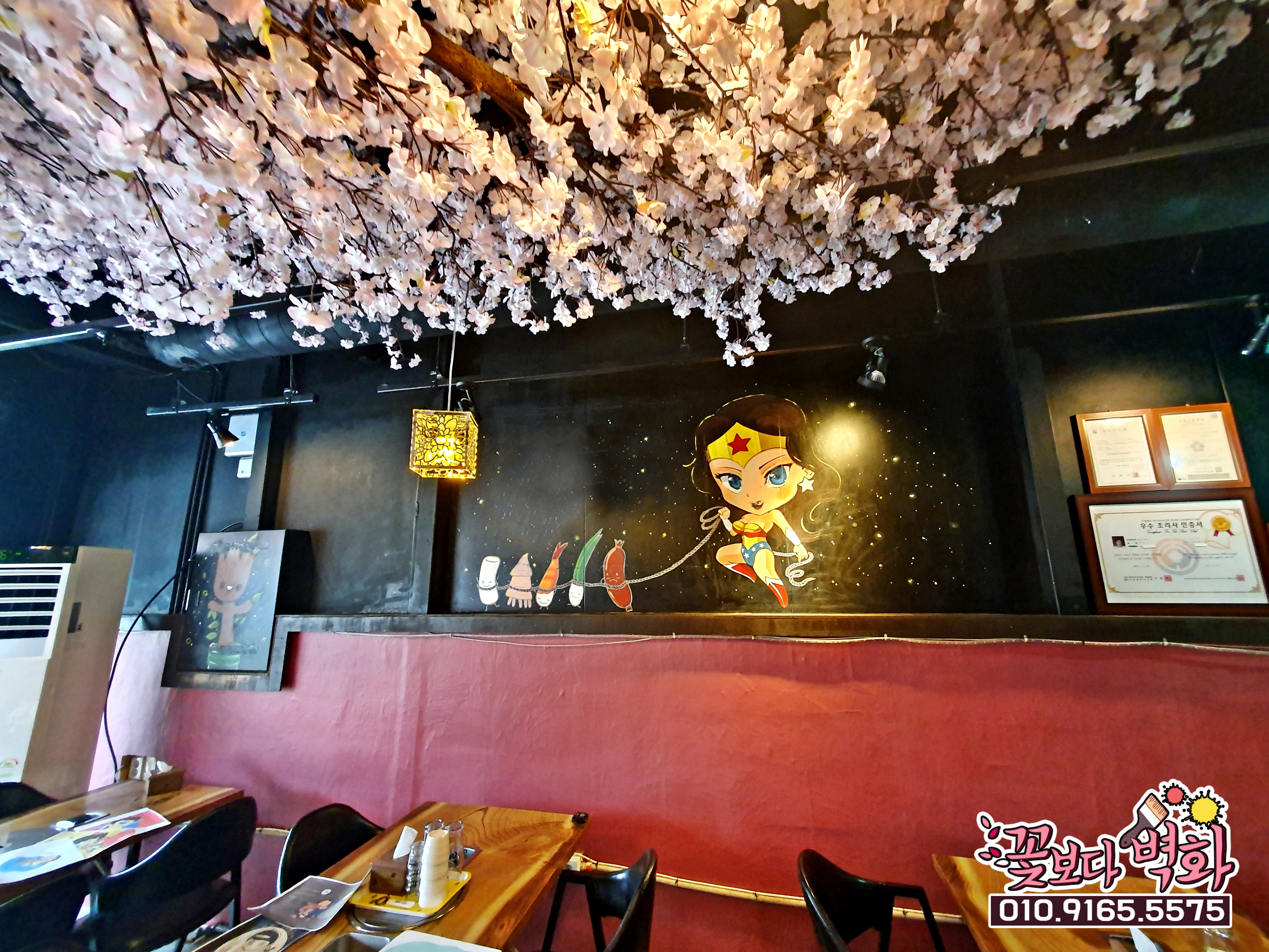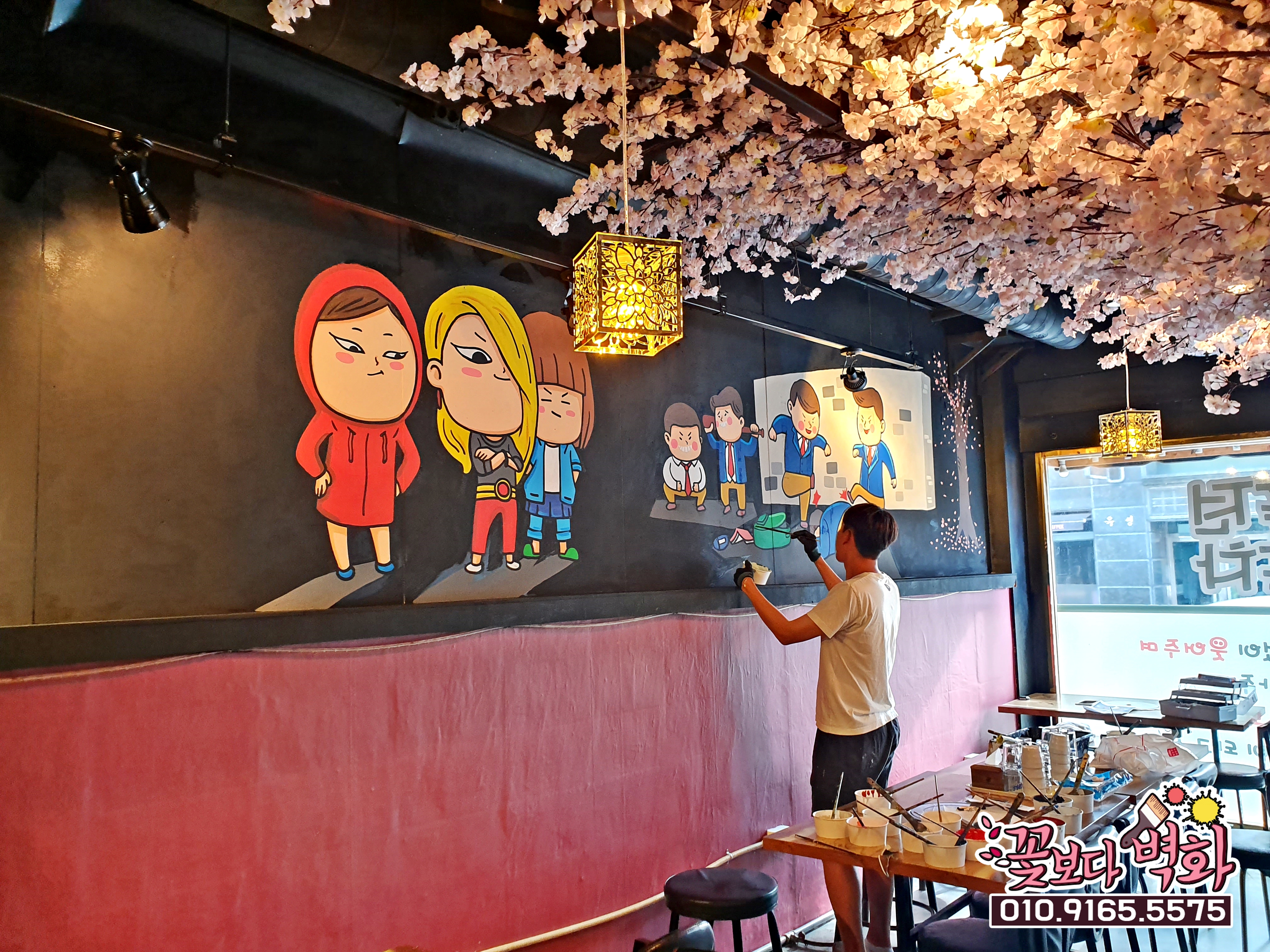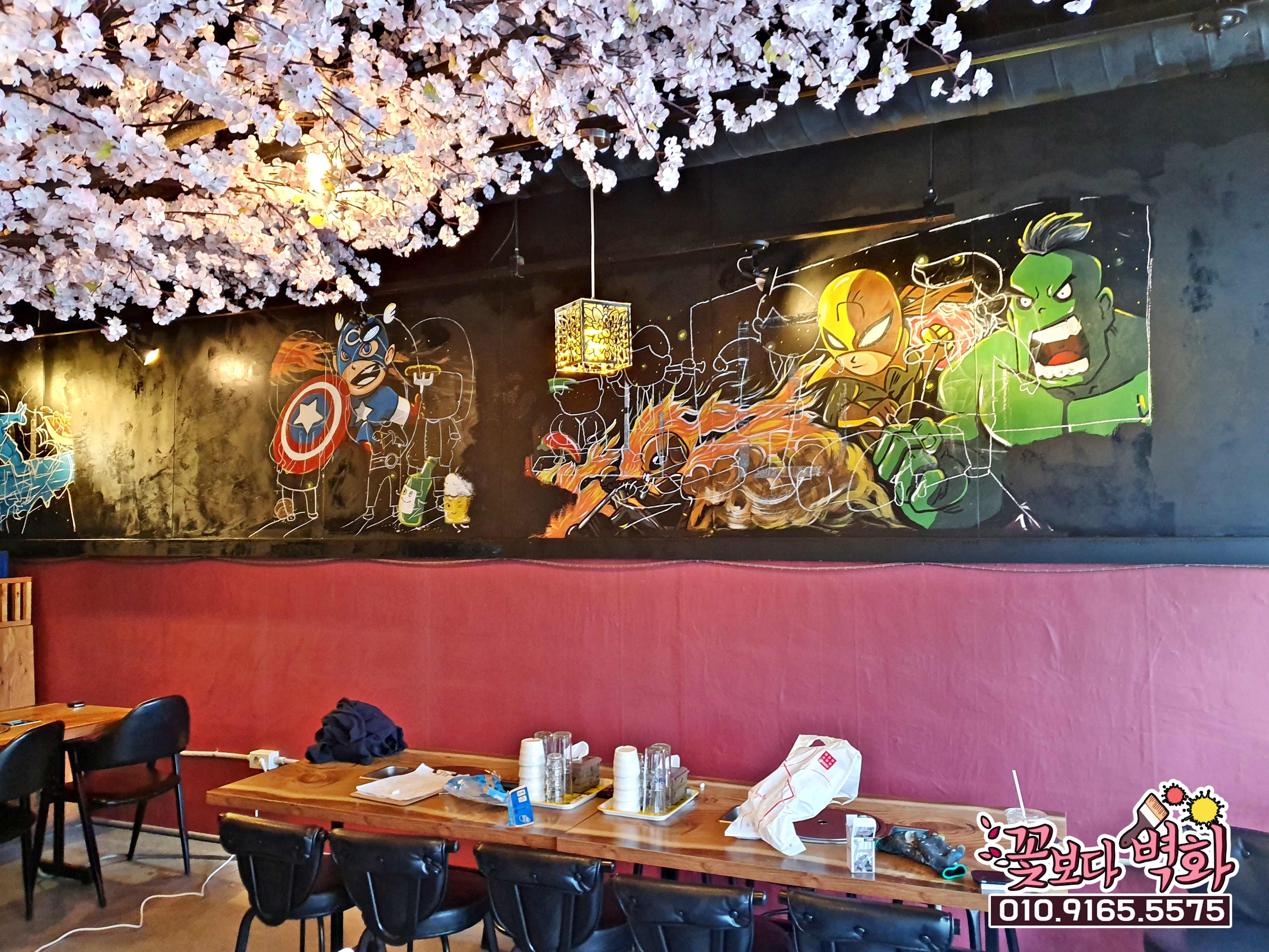 합리적인 비용에 짧은 인테리어 시공기간이 큰 장점인 벽화로 매장을 꾸며보세요^^