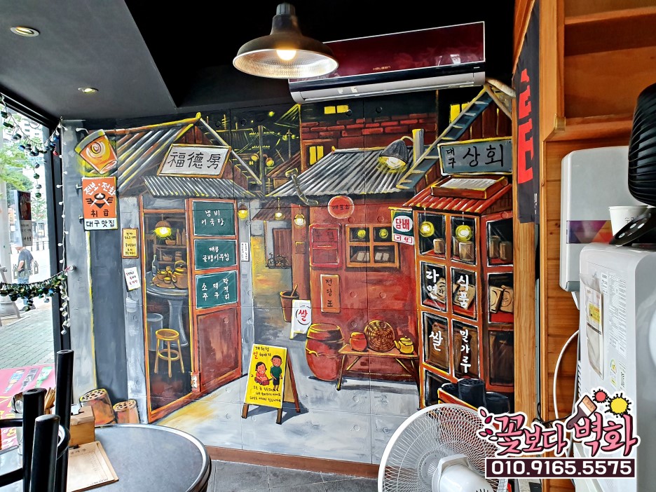 합리적인 비용에 짧은 인테리어 시공기간이 큰 장점인 벽화로 매장을 꾸며보세요^^