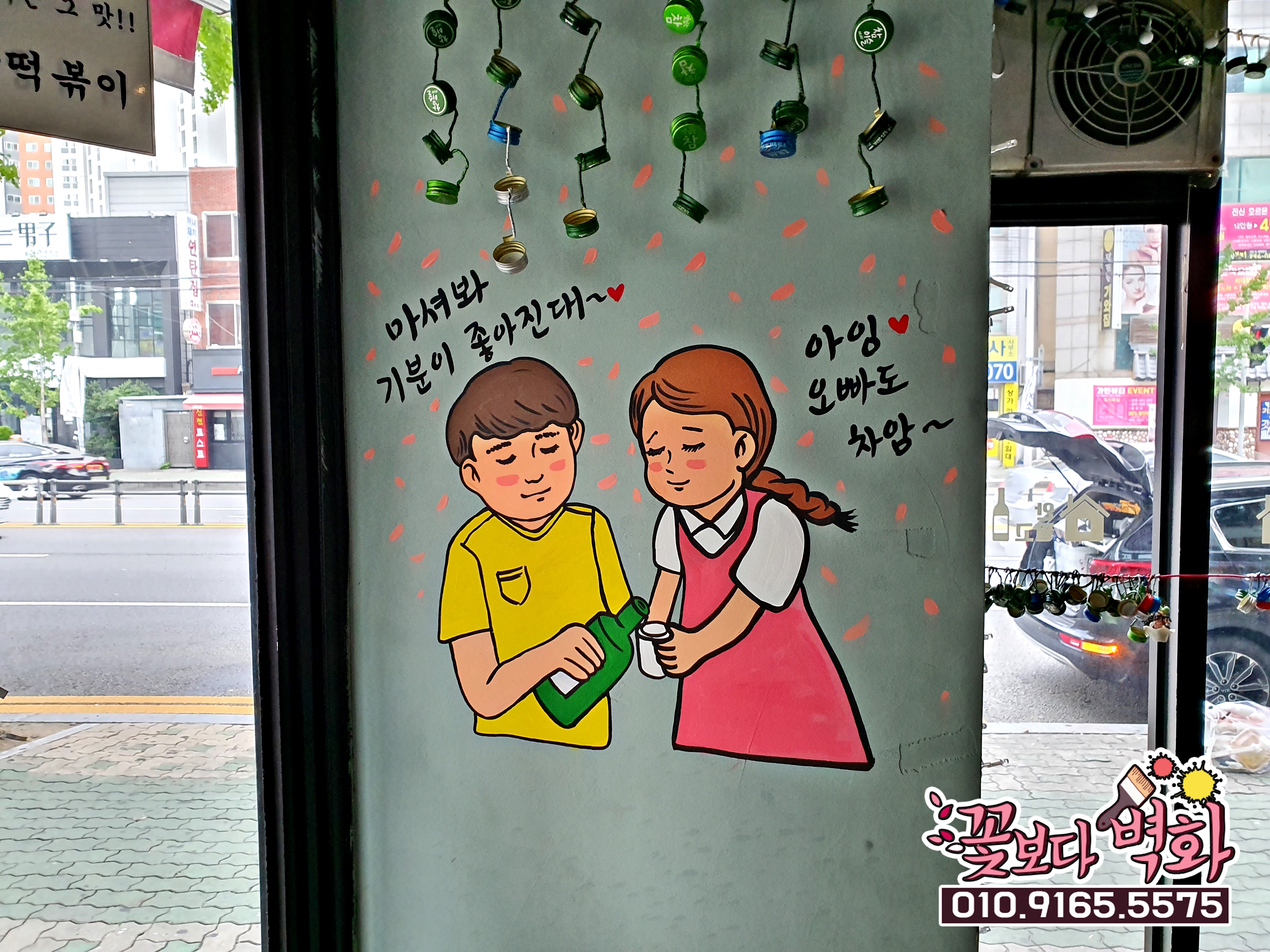 글자도 들어가고 귀여운 입간판도 만들어지니 훨씬 완성도 높은 벽화가되었습니다.