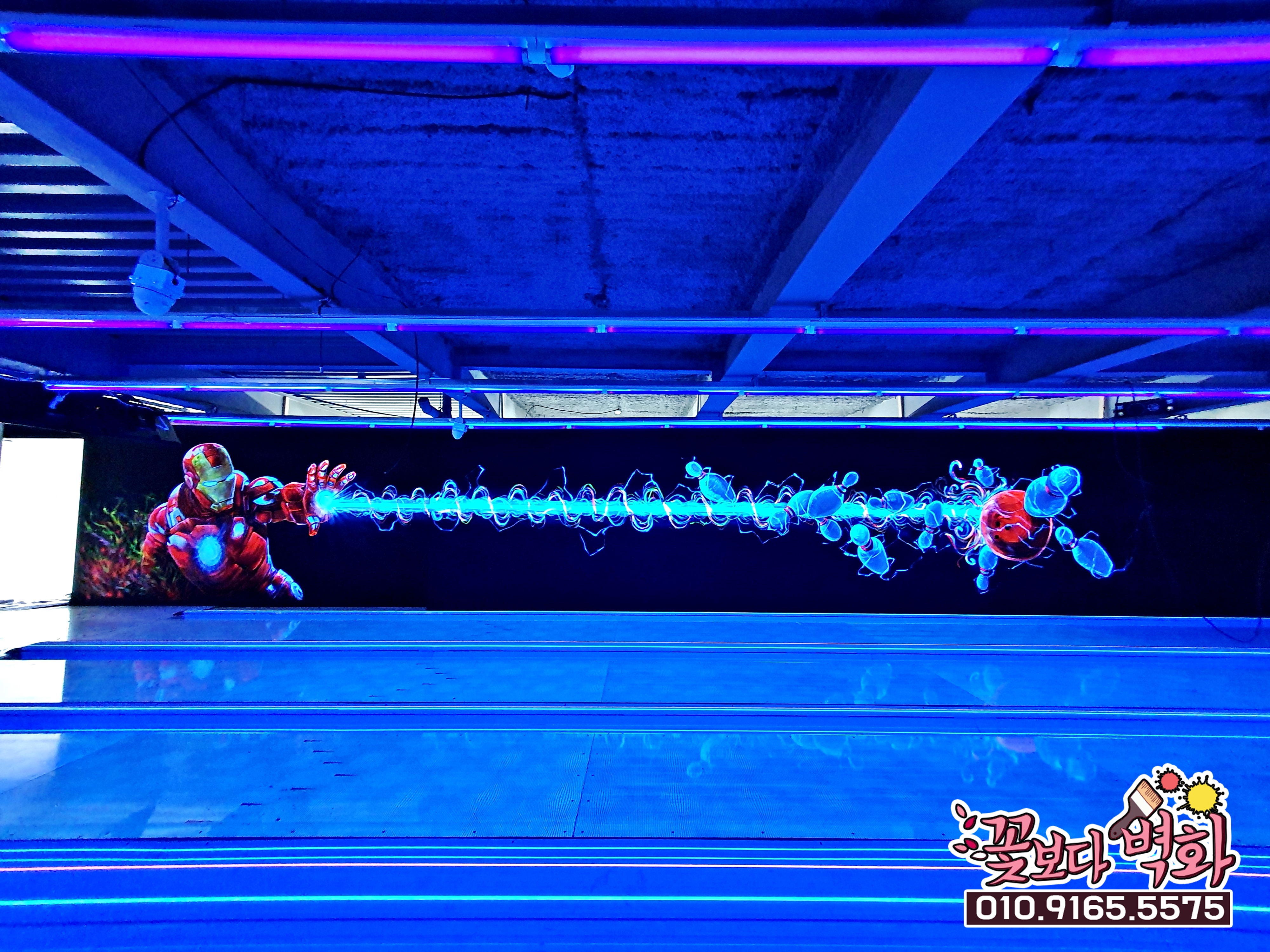 아이언맨과 형광벽화를 접목시키니 엄청난 퀄리티의 벽화가 탄생하였습니다.