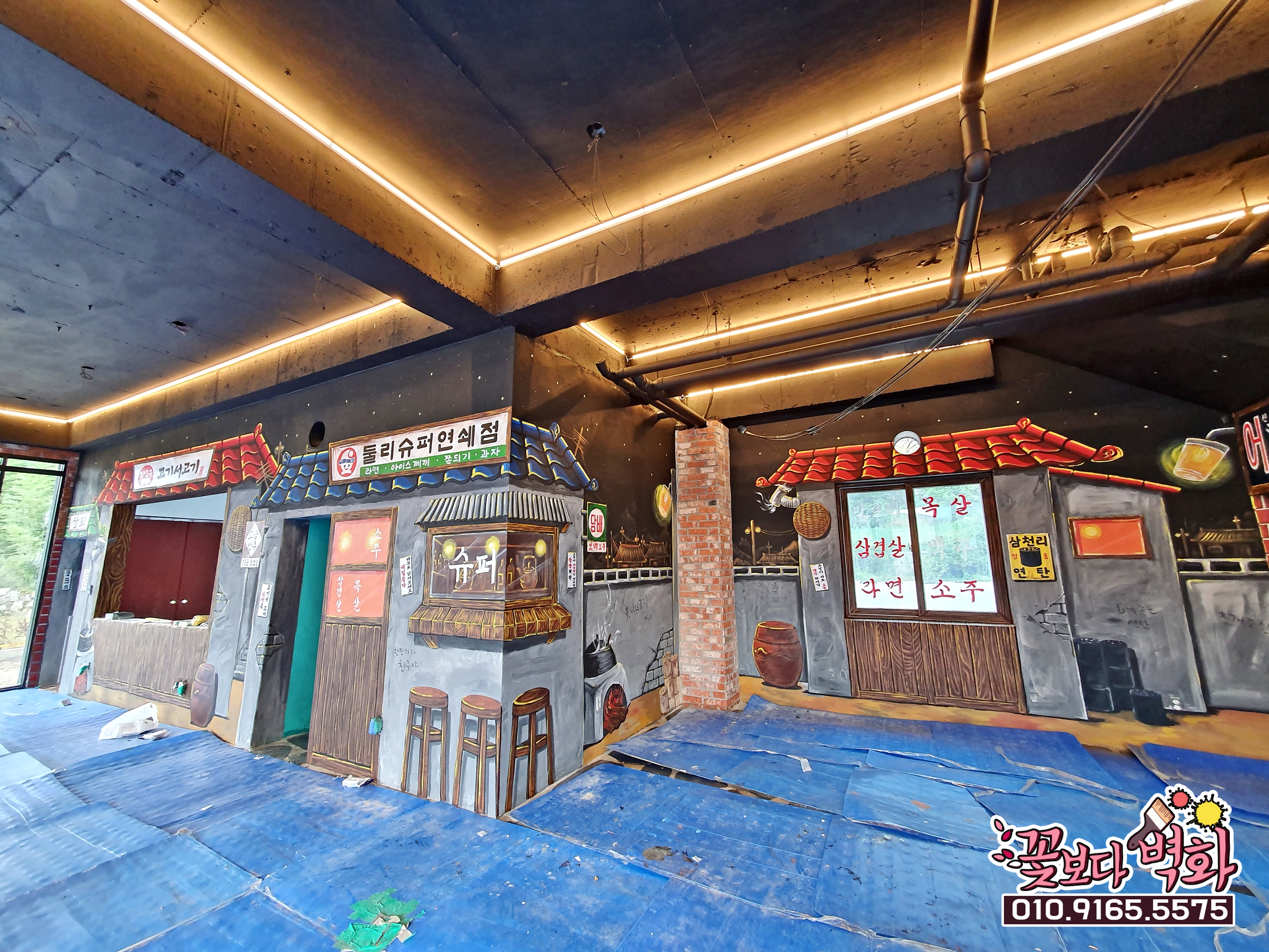 합리적인 비용에 짧은 인테리어 시공기간이 큰 장점인 벽화로 매장을 꾸며보세요^^
