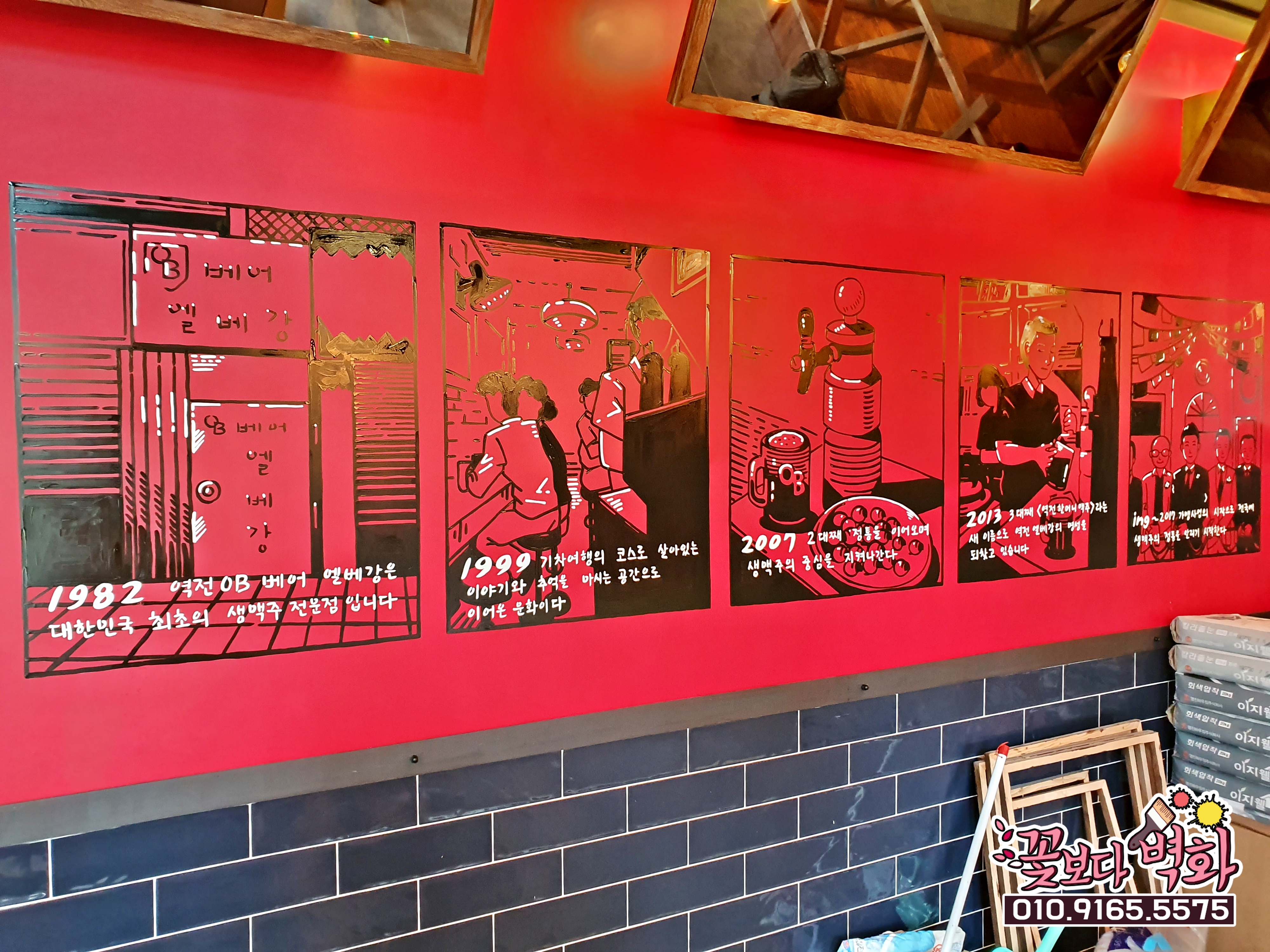 역전할머니맥주 벽화는 5가지의 그림으로 한 눈에 역전할머니맥주 역사를