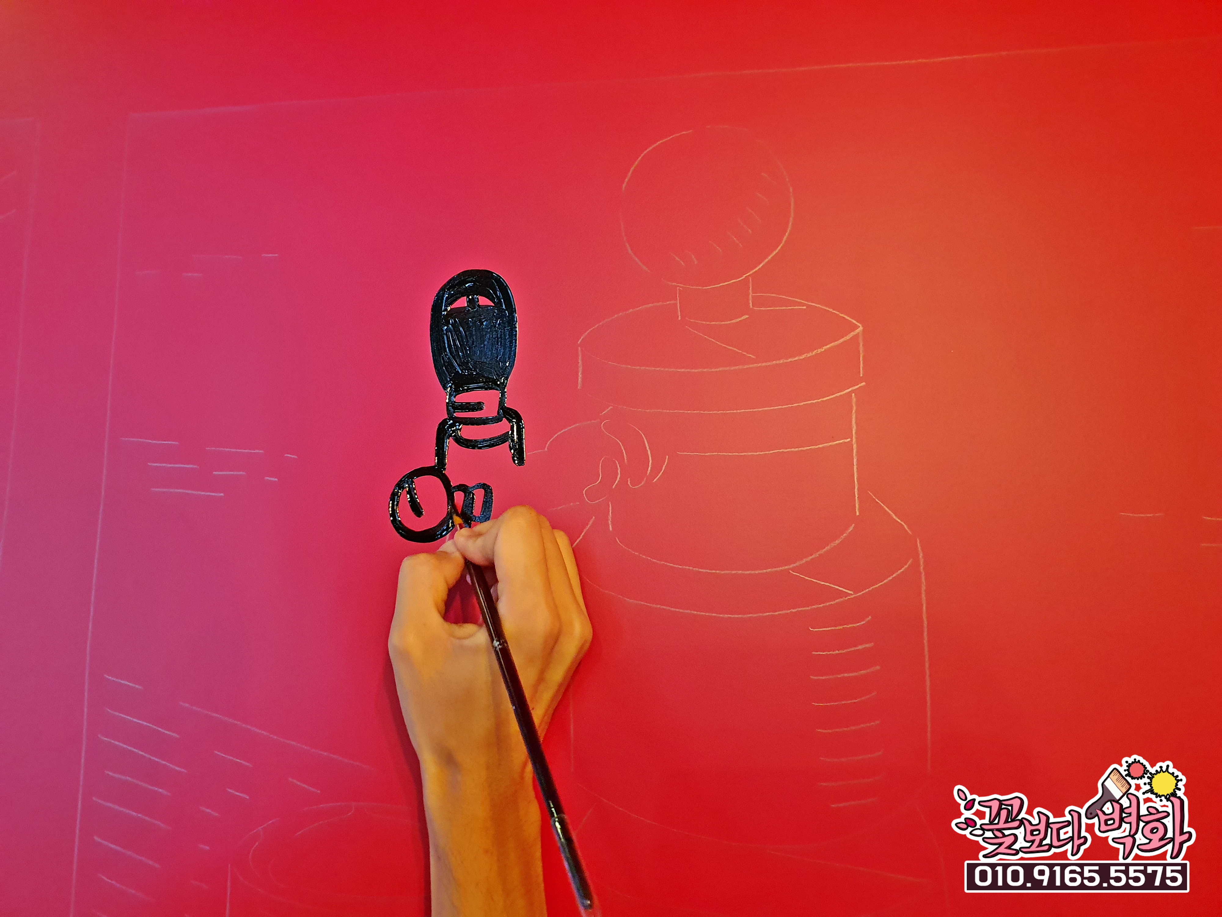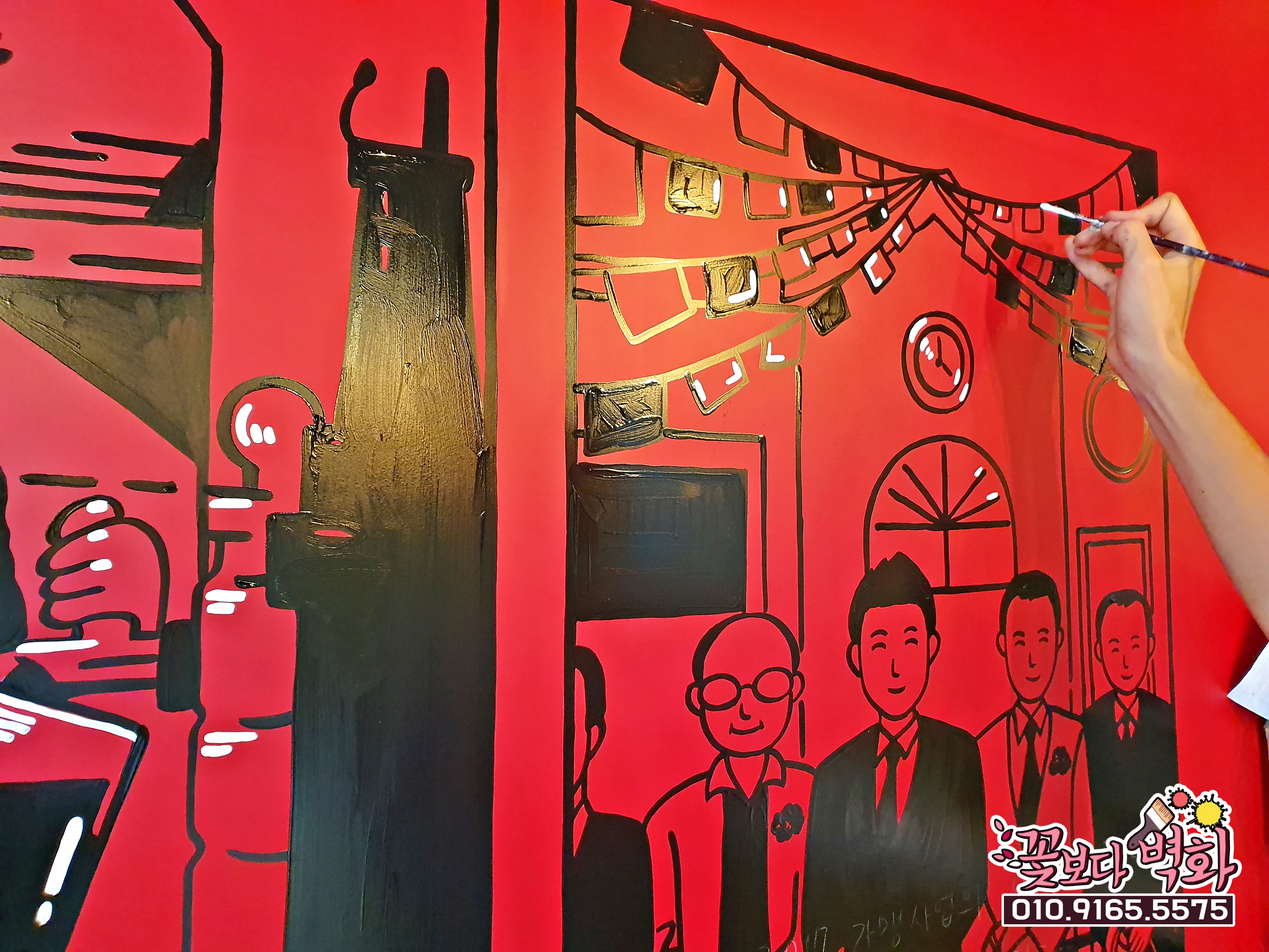 레드, 블랙, 화이트 이 3가지의 색 조합으로 아주 멋진 벽화가 탄생하였습니다.