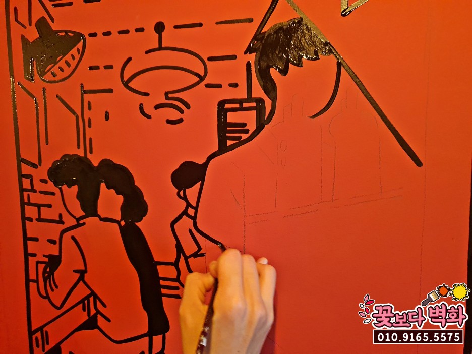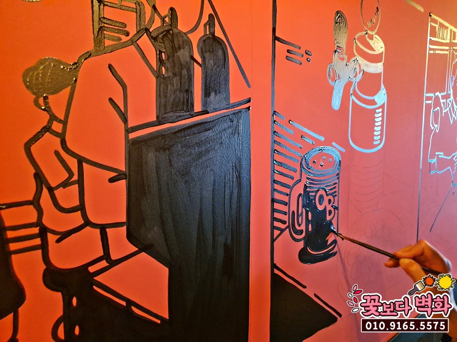 레드, 블랙, 화이트 이 3가지의 색 조합으로 아주 멋진 벽화가 탄생하였습니다