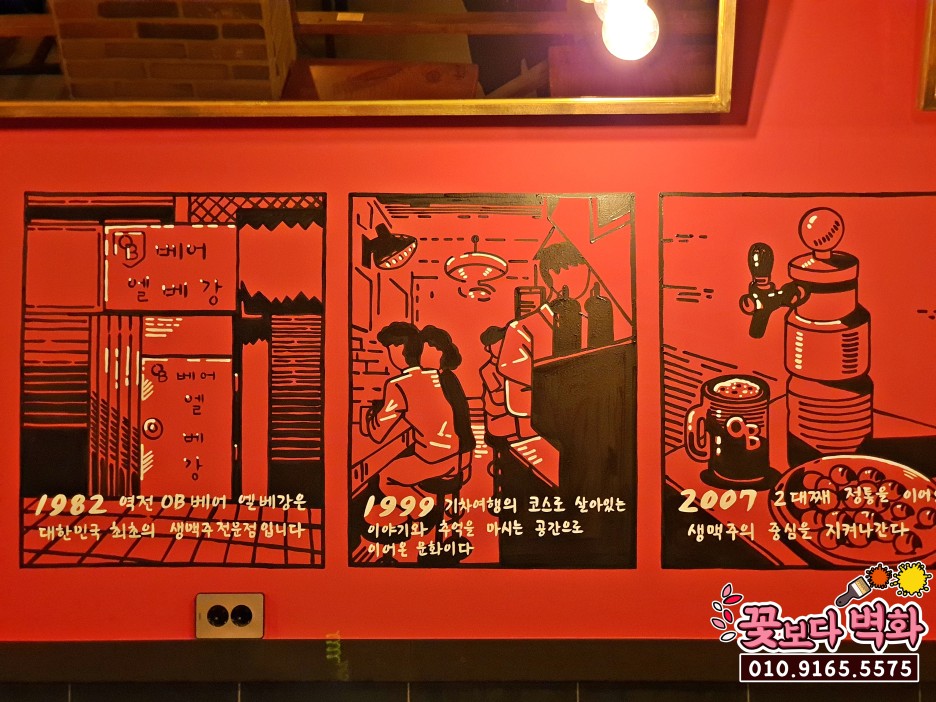 한 눈에 쏙 들어오는 일러스트 느낌의 역전할머니맥주 역사 벽화!