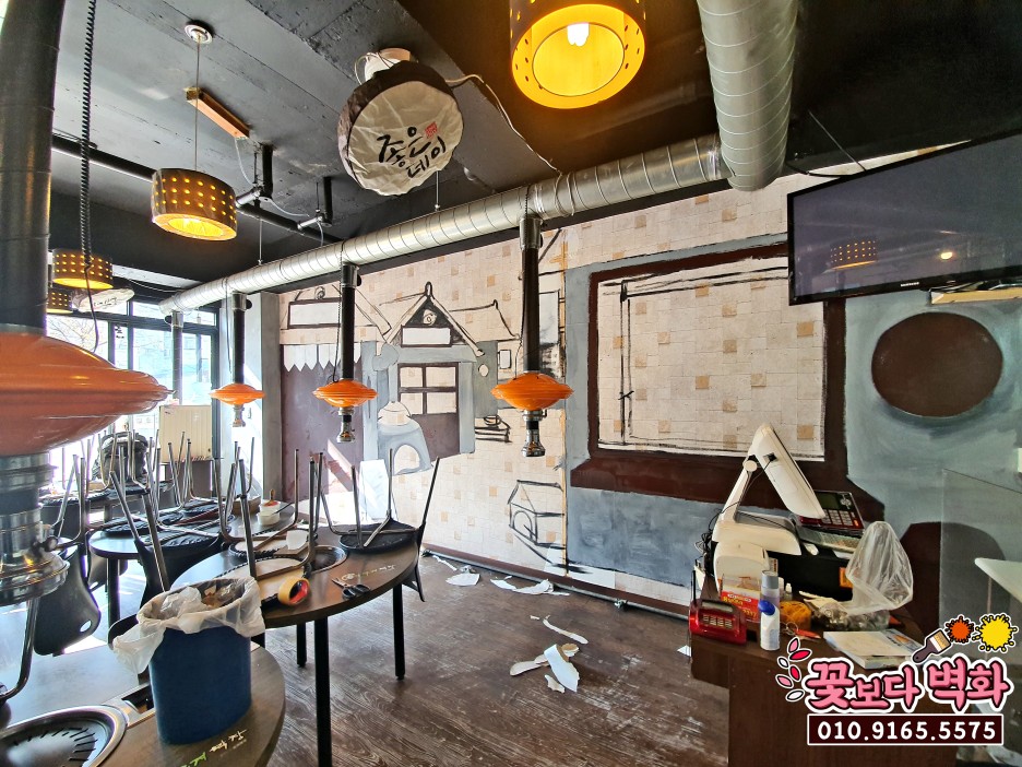합리적인 비용에 짧은 인테리어 시공기간이 큰 장점인 벽화로 매장을 꾸며보세요^^