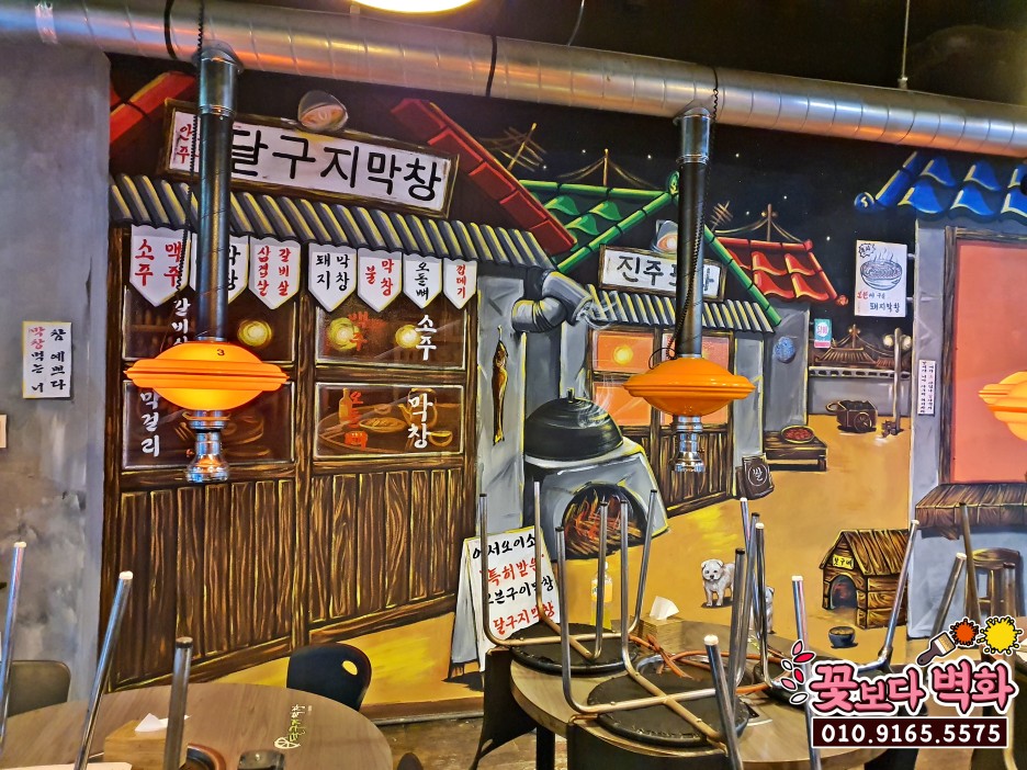 오늘 소개해드릴벽화는 달구지막창 복고풍 인테리어 벽화입니다~