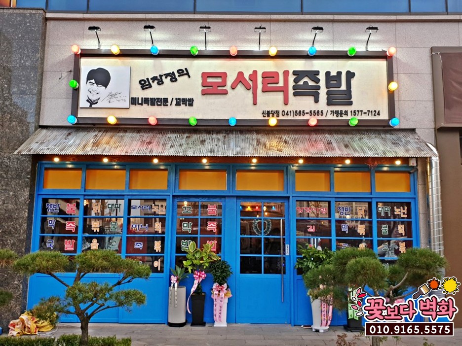 임창정의모서리족발 의 시그니처 하늘색이 중심을 딱 잡아주어