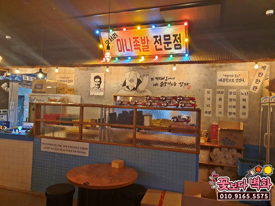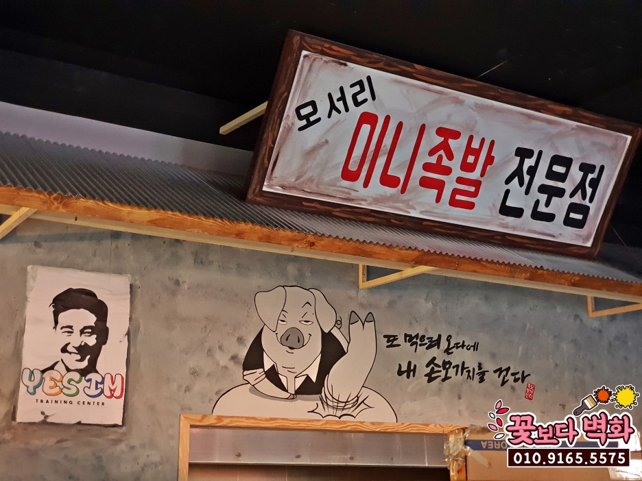 임창정의 모서리족발 신불당점 레트로 스타일 복고인테리어 벽화